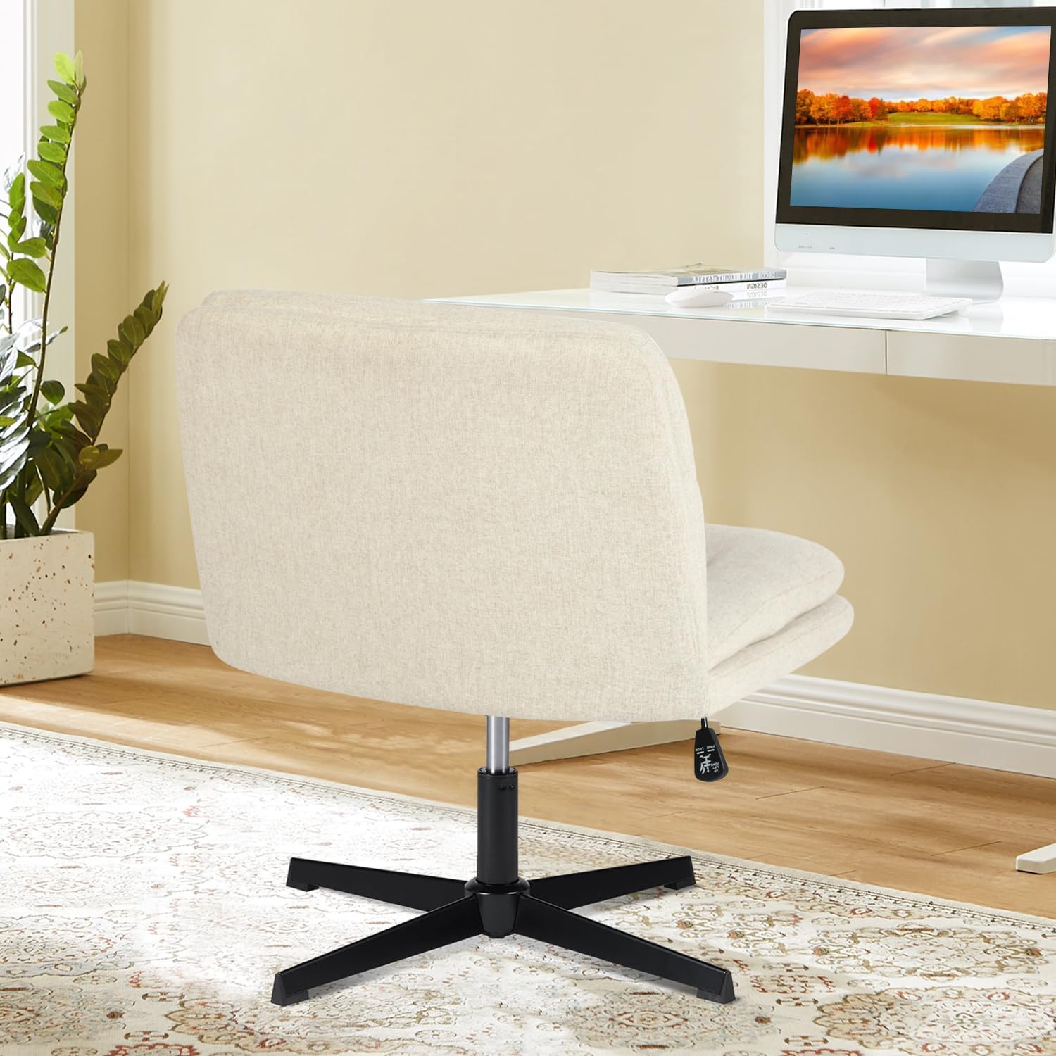Stable Base Without Wheels: Sturdy black metal base provides strong support and a wobble-free experience without rolling—perfect for small spaces and hardwood floors.