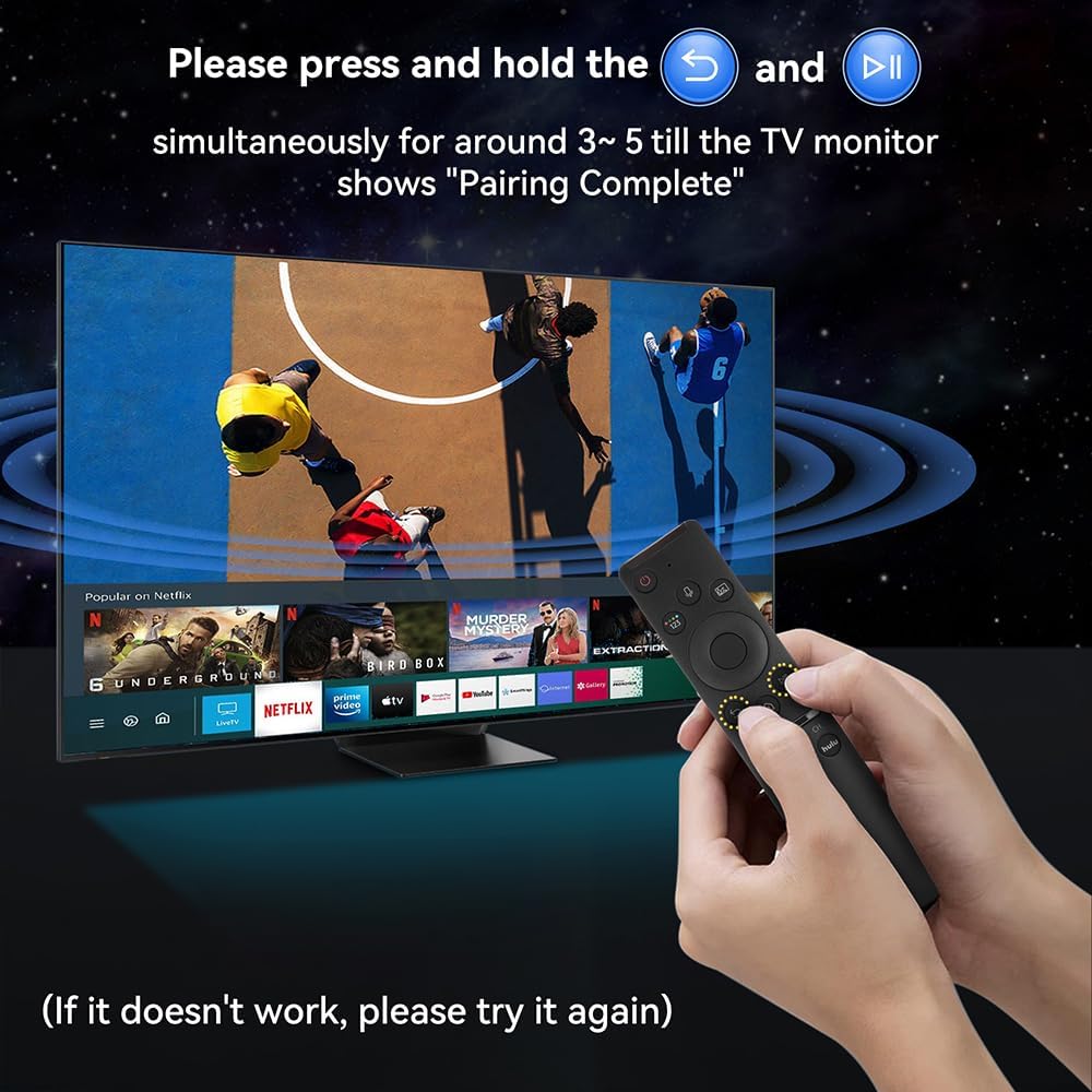 ✅ 【 Easy Pairing】Press and hold the “Return” and “Play/Pause” button simultaneously for 5 seconds until the TV screen shows that the pairing is completed.