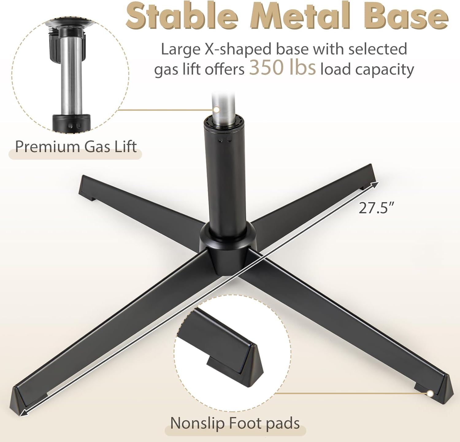 [Stable Metal Base]: Equipped with a large X-shaped base reinforced with a selected gas lift, this sturdy chair offers a 350 lbs load capacity. Besides, the non-slip rubber pad adds extra stability, making it reliable and safe for daily use.