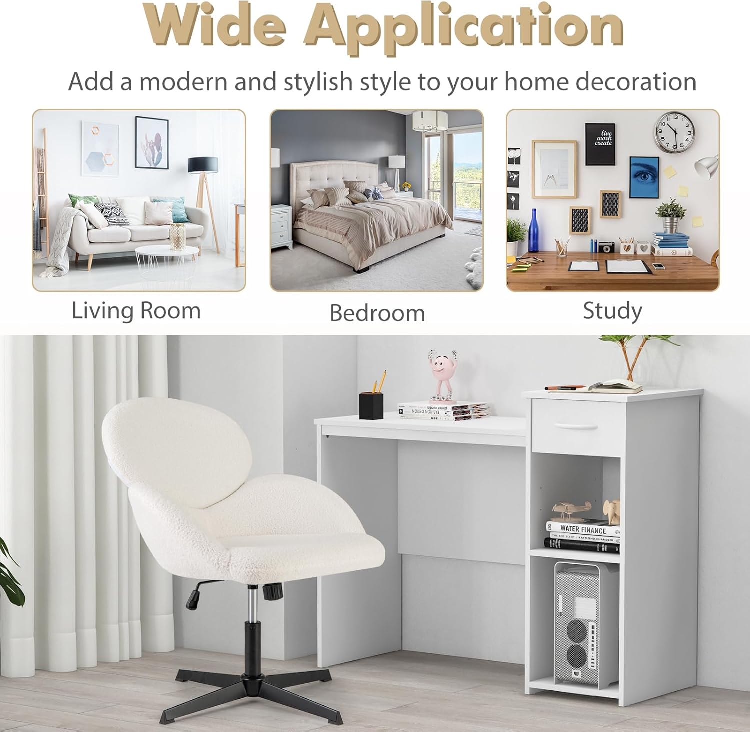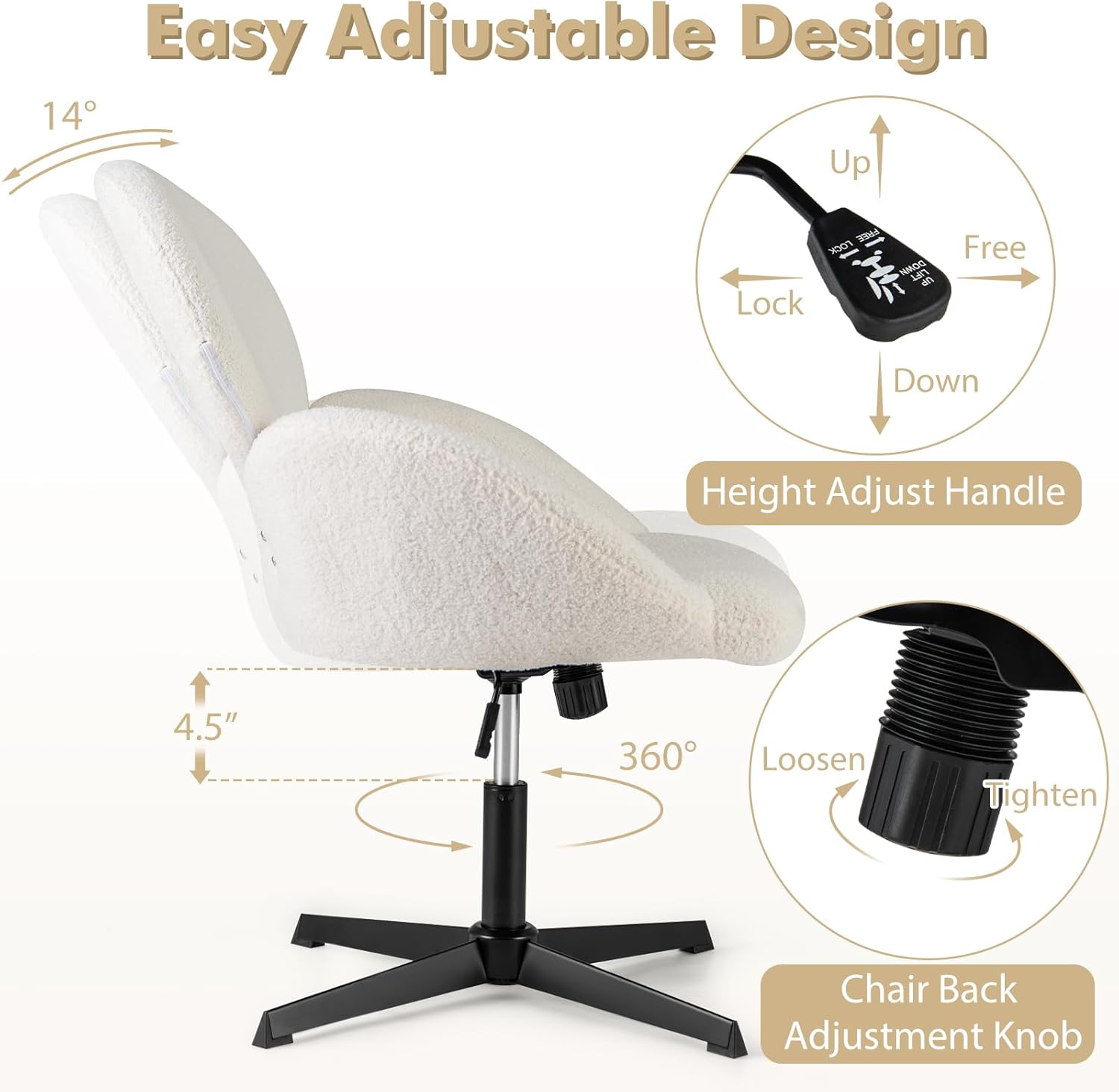 Are you looking for a chair that combines comfort, style, and functionality effortlessly? Look no further! Our criss cross chair is designed with an easy adjustable feature, allowing you to effortlessly change the height between 16.5″-21″ and freely lock the 360° swivel. Plus, control your rocking experience by tightening or loosening the adjust knob for a personalized touch. Besides, our comfortable upholstered desk chair features a high-density sponge cushion that ensures long-lasting comfort without deformation. The ergonomic backrest provides excellent support for your back, enhancing your overall sitting experience. whether it’s the living room, bedroom, or study, this chair will add a touch of modern elegance to your room. Moreover, the stable metal base, featuring a large X-shaped design and a selected gas lift, ensures a 350 lbs load capacity for reliable and safe daily use. And the non-slip rubber pad adds extra stability for added peace of mind.