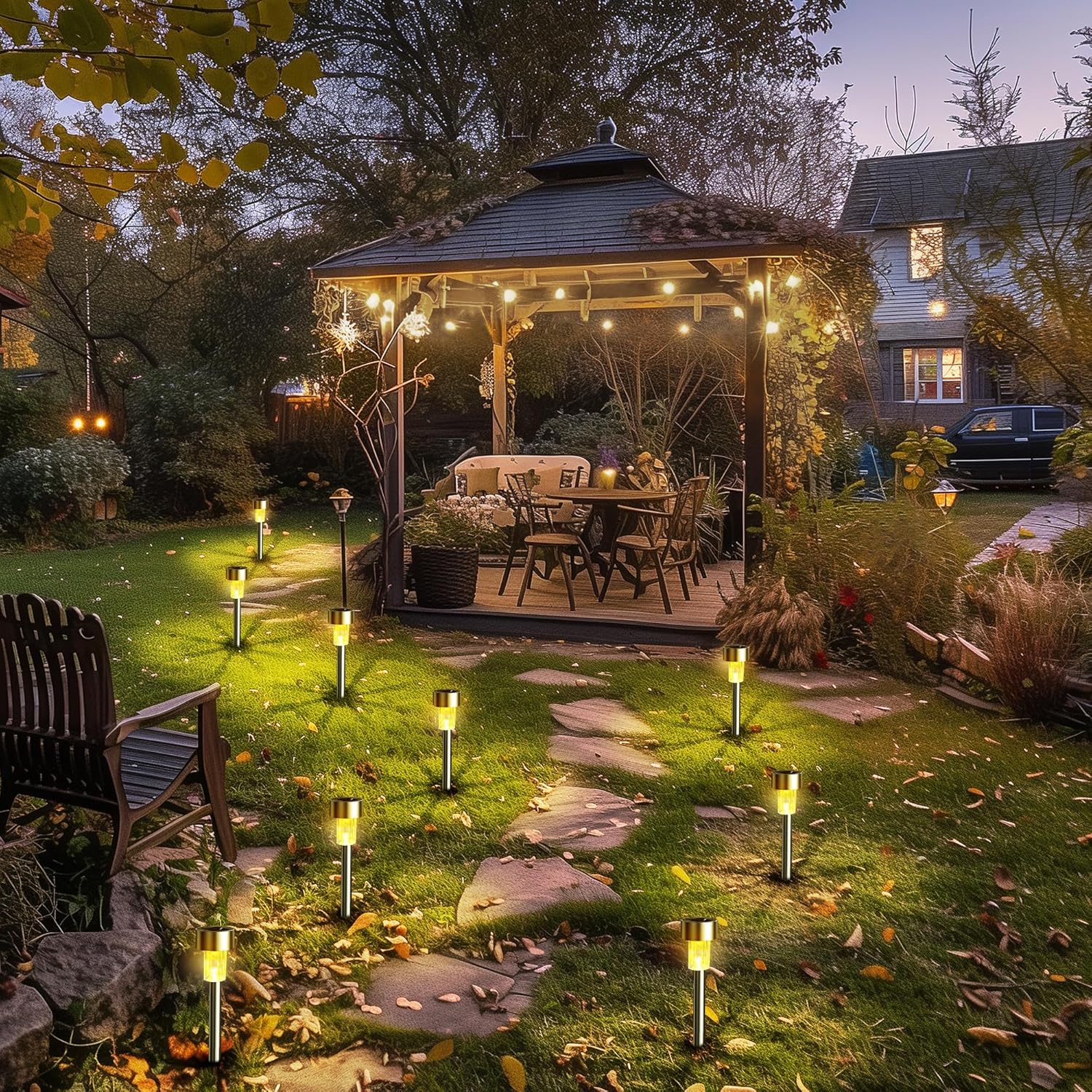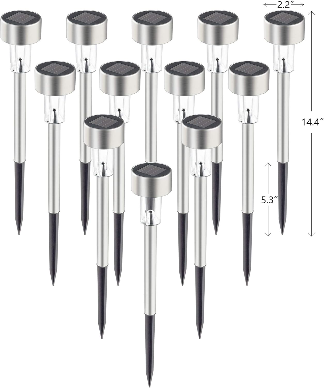 GIGALUMI Solar Pathway Lights, Stainless Steel IP44 Waterproof Auto On/Off Outdoor LED Solar Landscape Lights for Garden, Yard, Patio, Path and Walkway(12 Pack, Warm White)