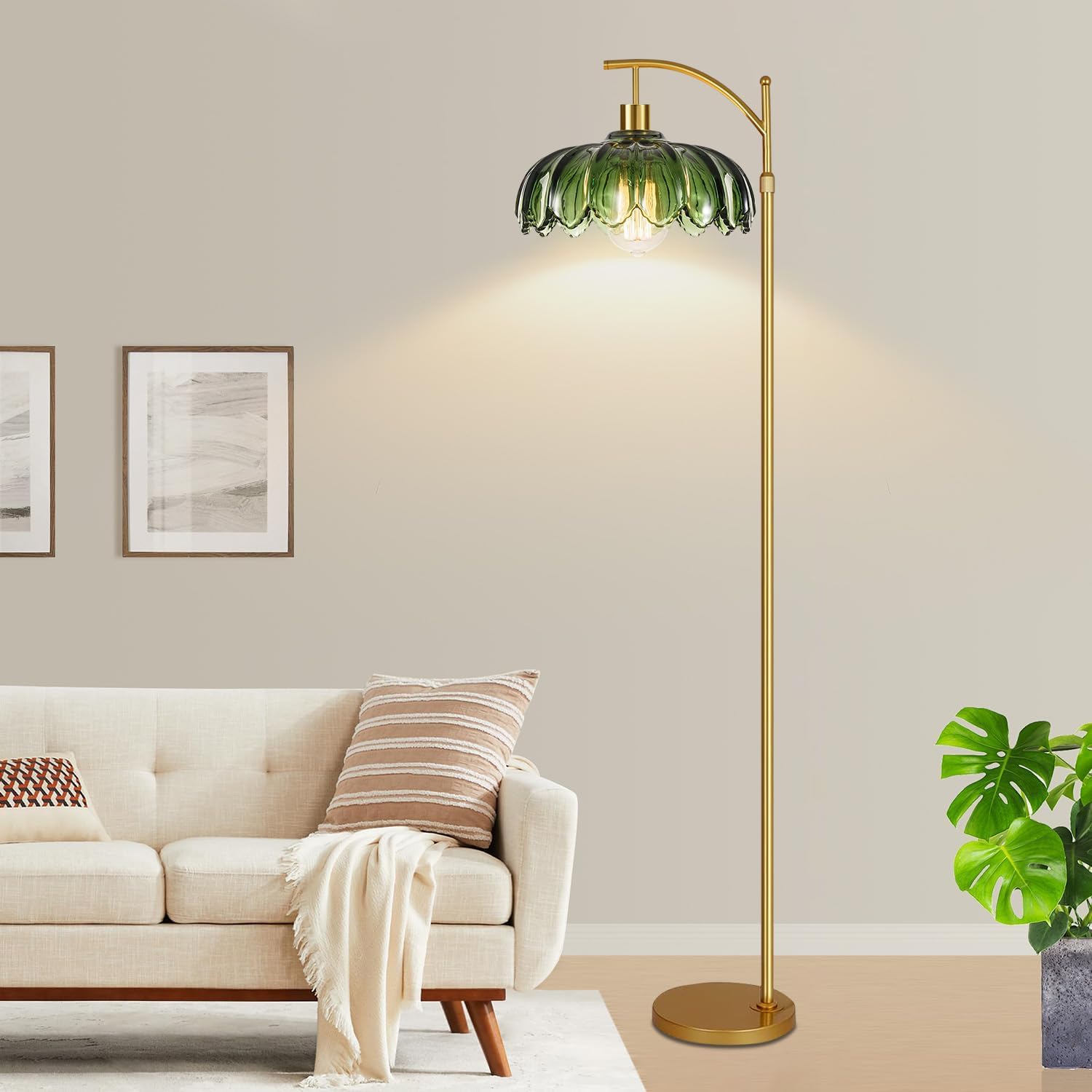 Gold Floor Lamp:This Is A Mid Century Modern Green Lamp Shade With Beautiful Delicate Detail And A Gorgeous Exterior. This Unique And Elegant Design Will Bring A Comfortable Atmosphere To Your Room And Beauty Your Space