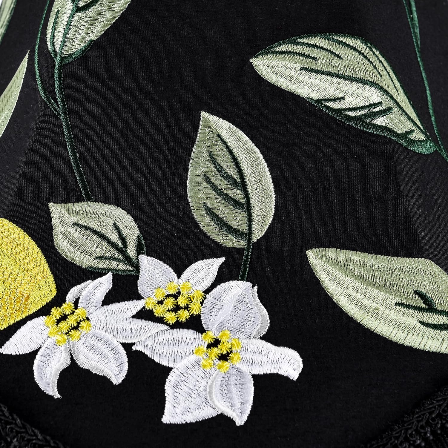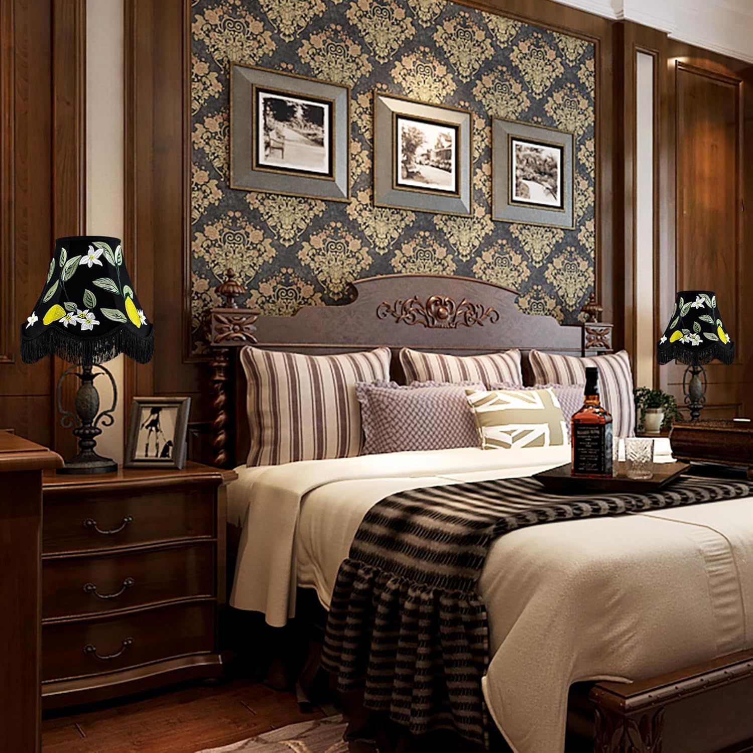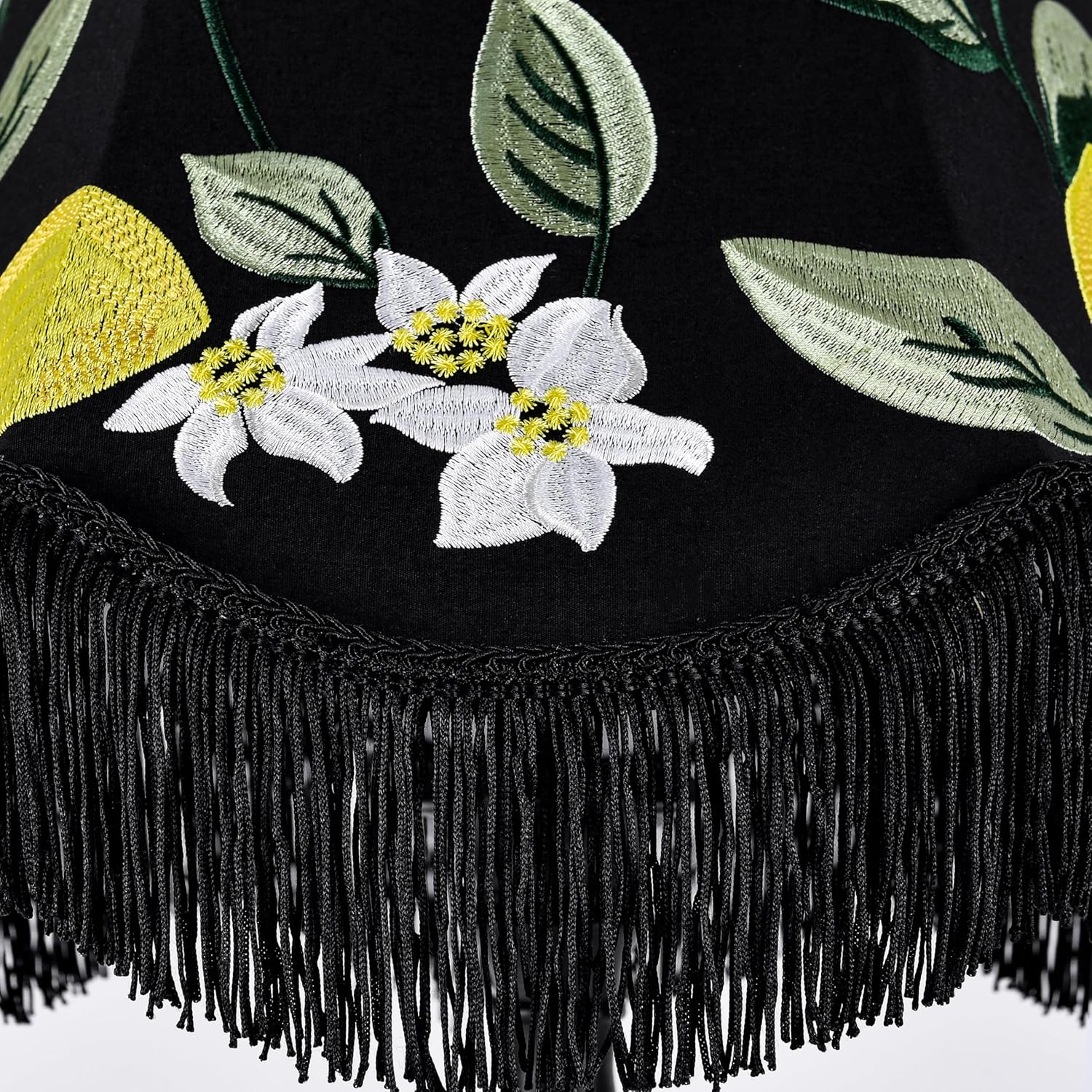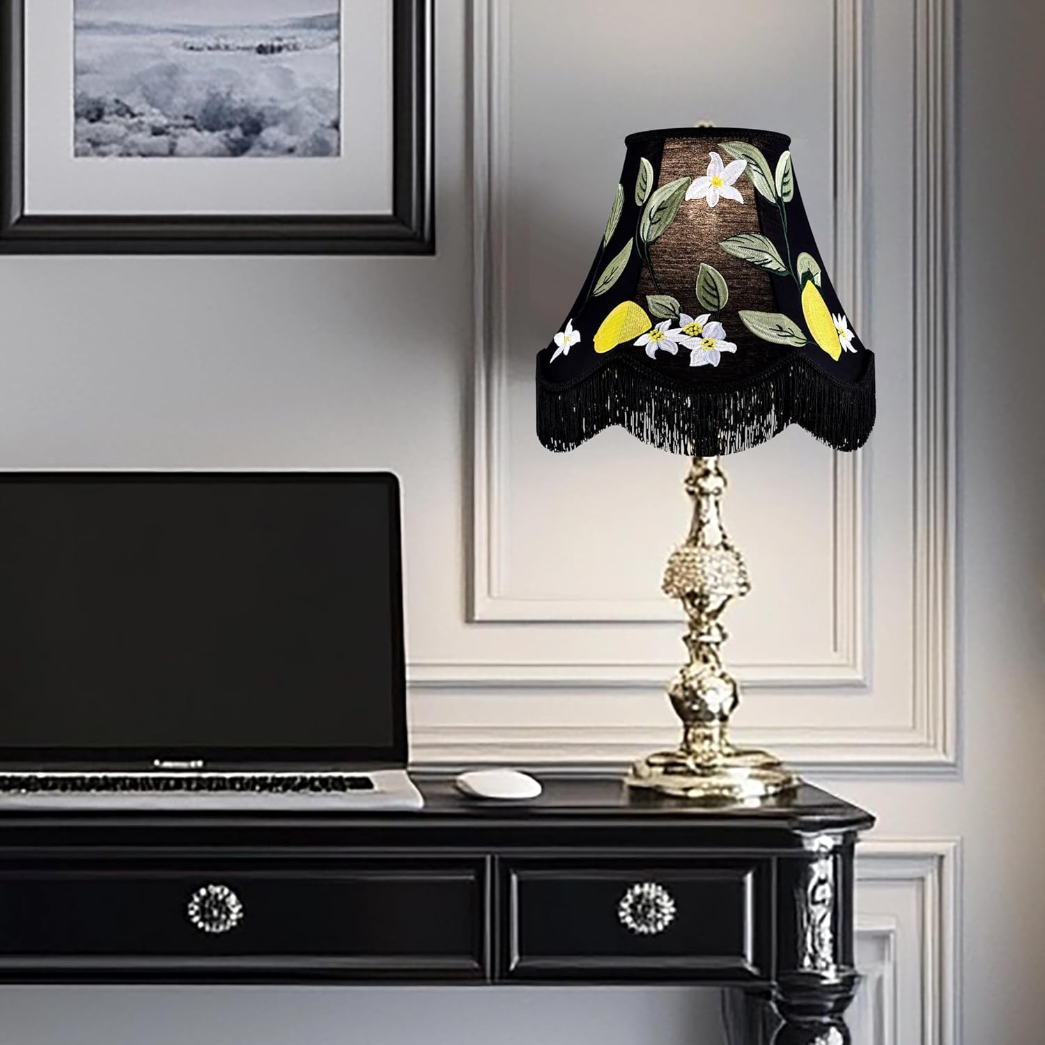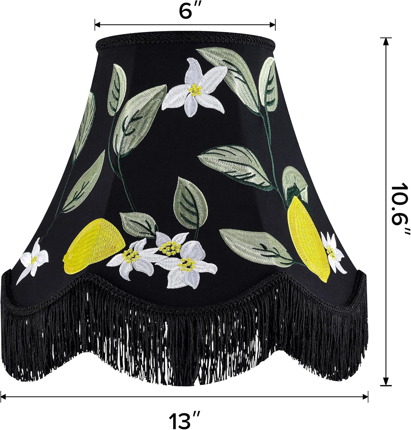 GO&SO Black Floral Embroidery Bell Lamp Shades Set of 2,Handcrafted Silk Petal Edge with Fringe Trim,6″x13″x10.6″(Spider),Vintage Ornate Lamp Shade Replacement for Table,Floor Lamps,Easy Assembly