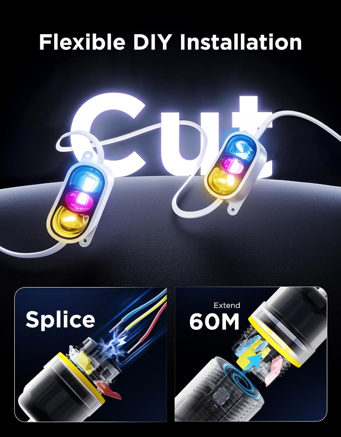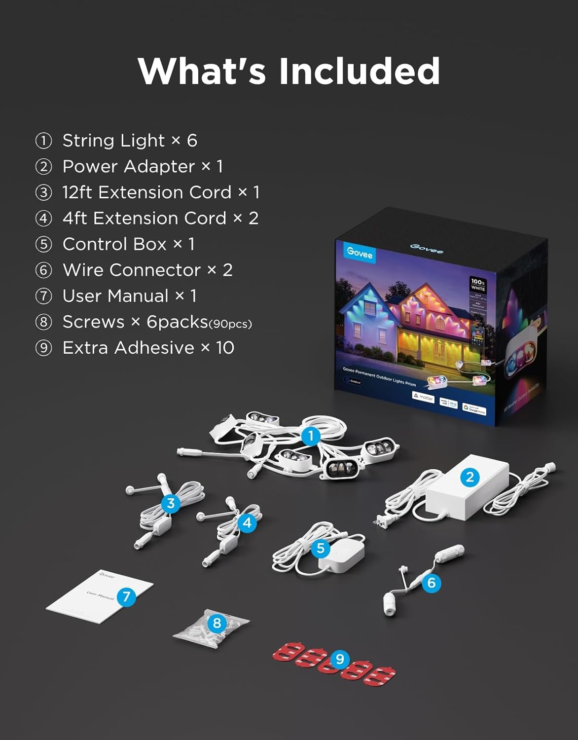 Easy to Cut, Splice & Extend: Versatile DIY installation methods let Govee permanent outdoor lights fit any space, avoiding tangles or gaps. Use the provided adhesive and pre-drilled screws for secure stability