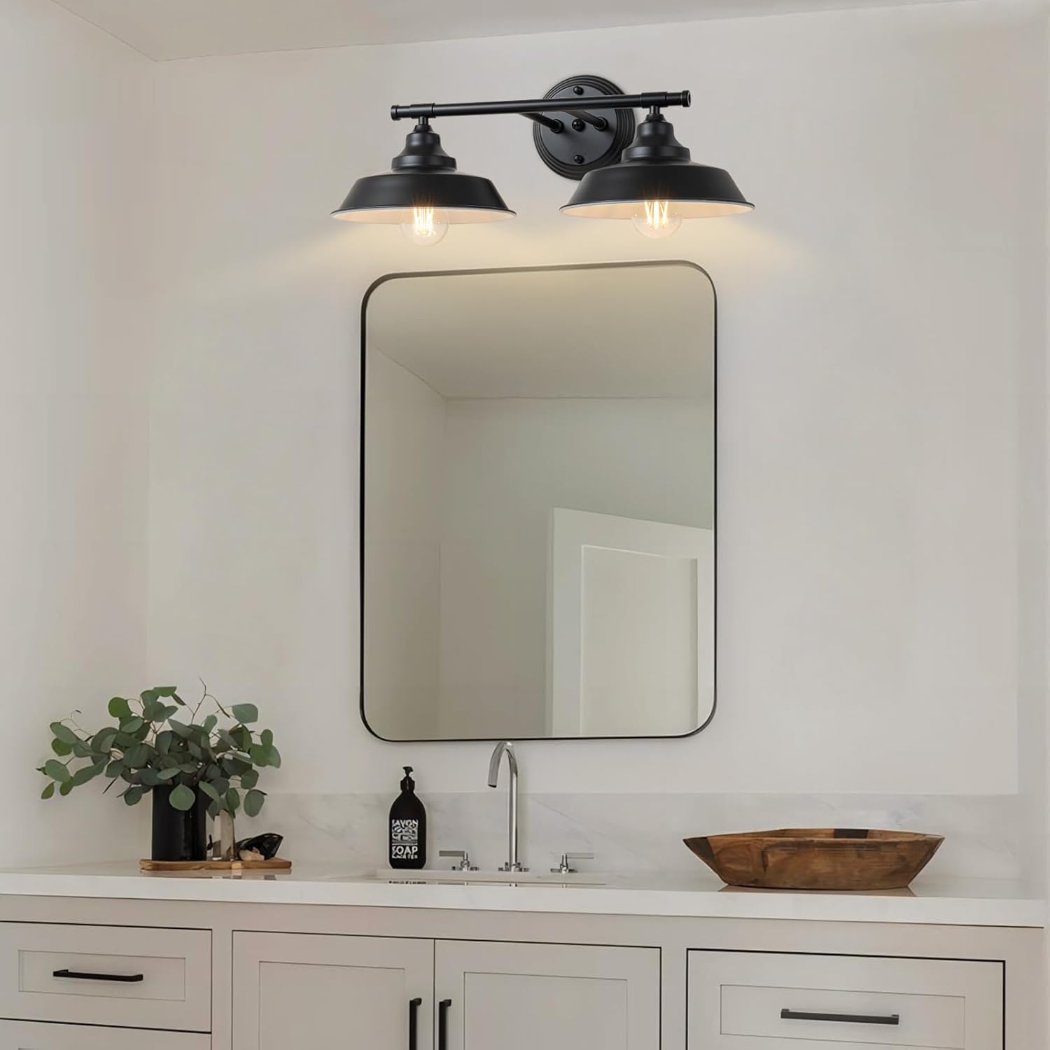 Light Fixtures Bathroom Vanity Unique Design: This 2 light stylish Hanging lighting features a metal wall mount that gently diffuses light when the fixture is illuminated, add an elegant touch to your home. The farmhouse bathroom light fixtures design allows for this black sconce to be installed over mirror Cabinets Dressing Table and a vanity in the bathroom, enjoy the warmth and rustic charm them.