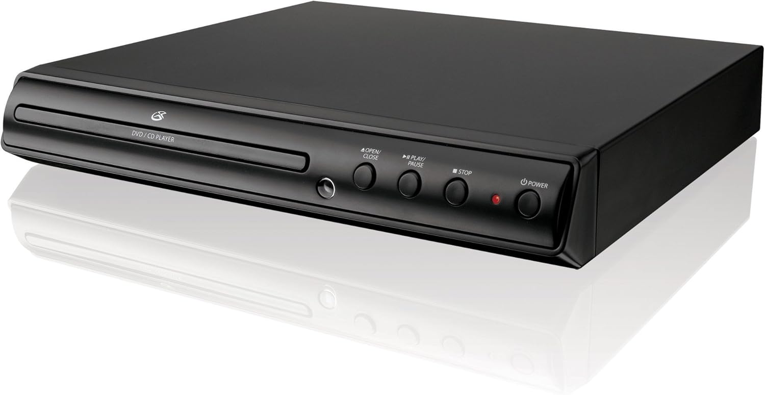 Slim DVD player plays DVDs and CDs