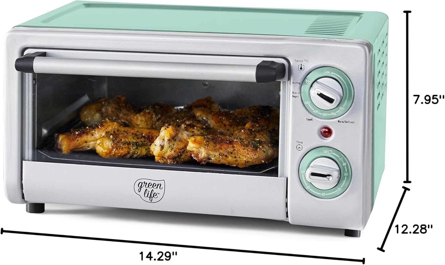 GreenLife Countertop Toaster Oven Air Fryer Stainless Steel, Healthy Ceramic Nonstick, PFAS and PFOA-Free, Tray & Basket, Bake, Broil, Reheat, Adjustable Temp & Time Control, Auto Shutoff, Turquoise