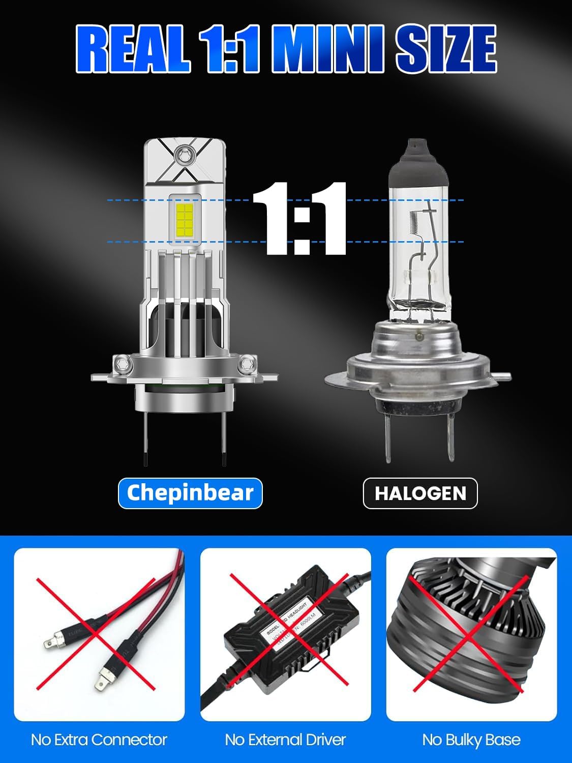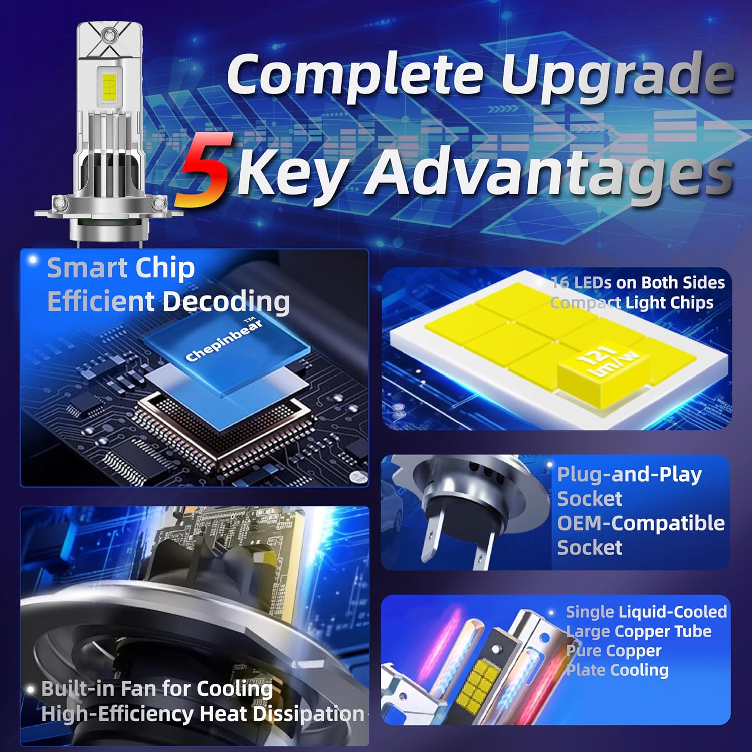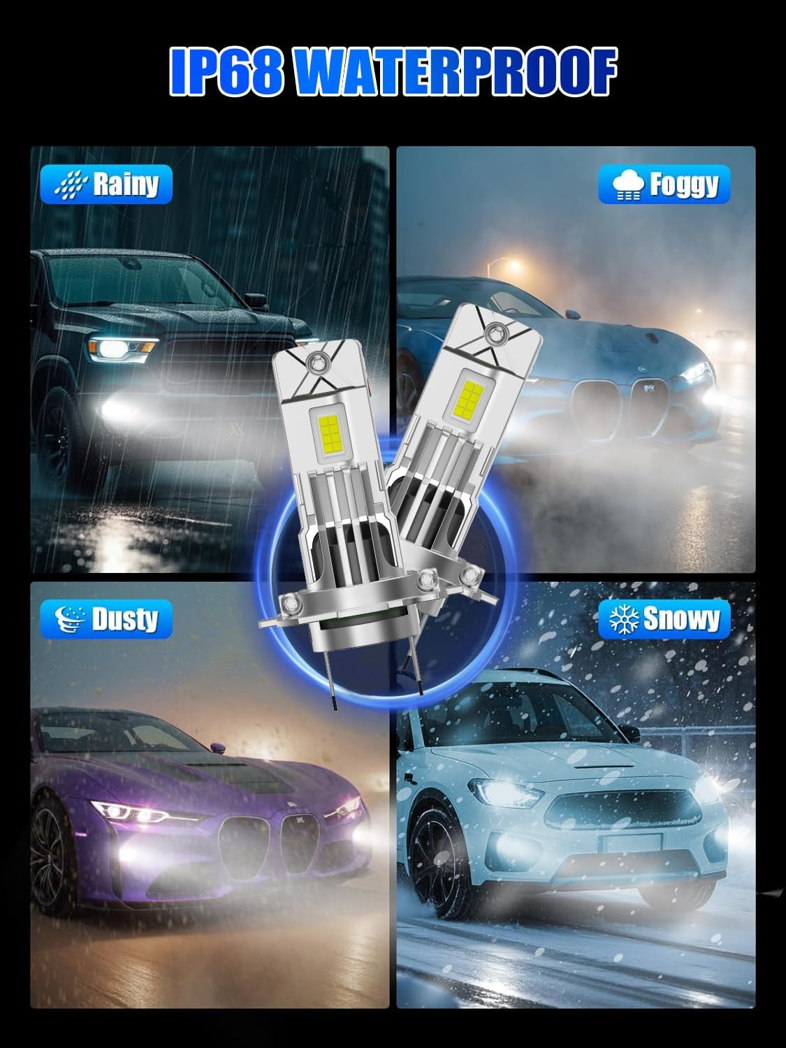 5 Mins Plug-and-Play Installation: Direct replacement for original bulbs with no tools, wiring, or modifications required. H7 bulbs fit existing sockets seamlessly for effortless upgrades