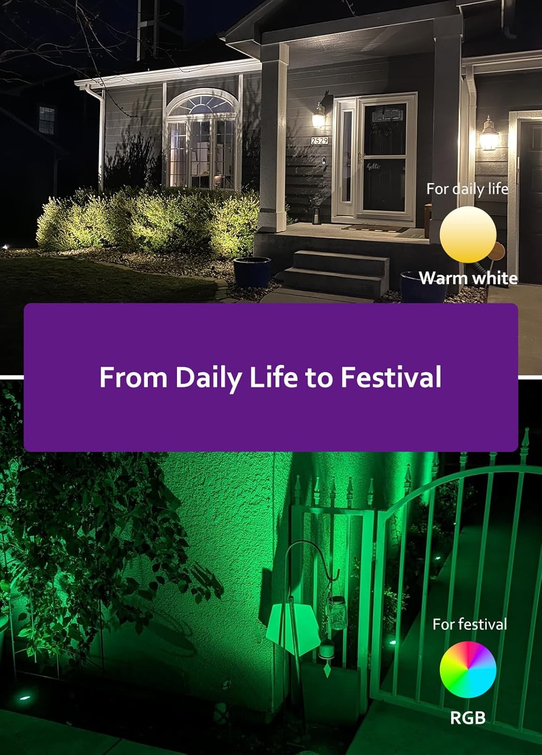 Multiple functions but easy to use: These outdoor landscape spotlights have 16 static colors (include warm white), 4 dynamic color changing modes (flash, strobe, fade, smooth) and 3 brightness levels. Suitable for both festivals and daily use. You can easily set it up to your favorite modes with the remote, and thanks to the memory function, these spotlights can remember what you set last time, which is very convenient.