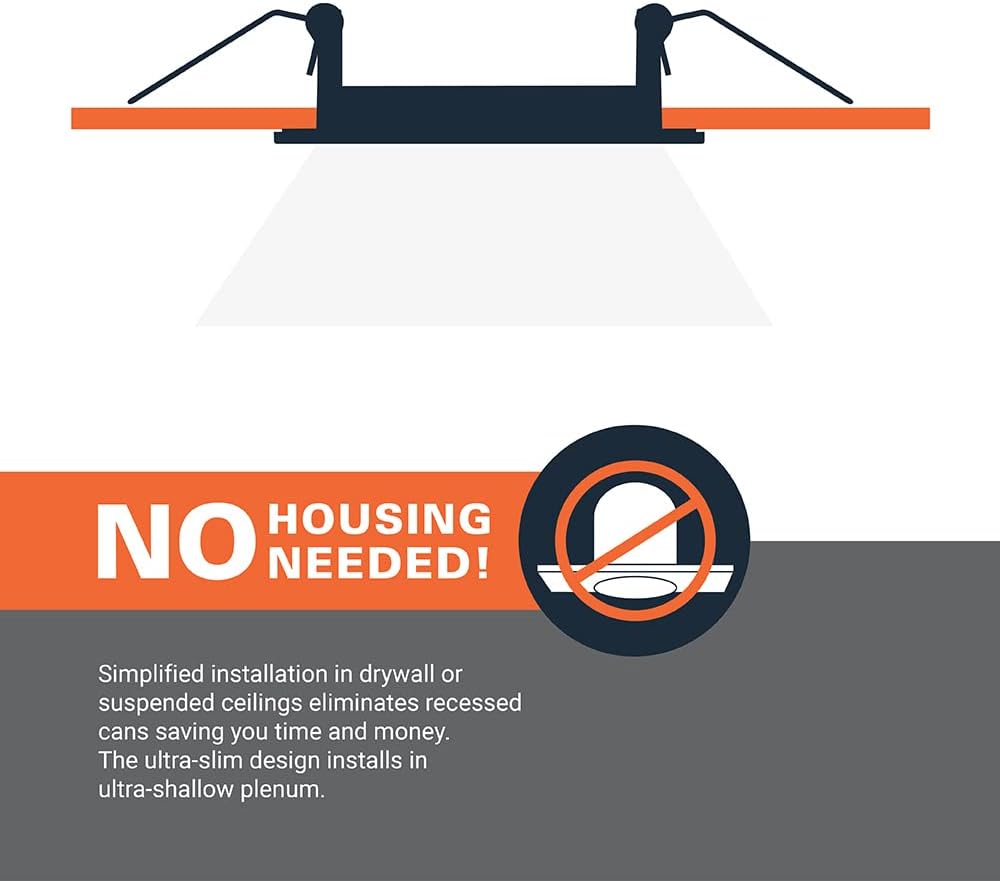 ULTRA SLIM AND AIRTIGHT: Fixture is less than 1⁄2″ thick and mounts directly to the ceiling, avoiding obstacles like joists and ducting, with an airtight fit; IC (insulation contact) rated