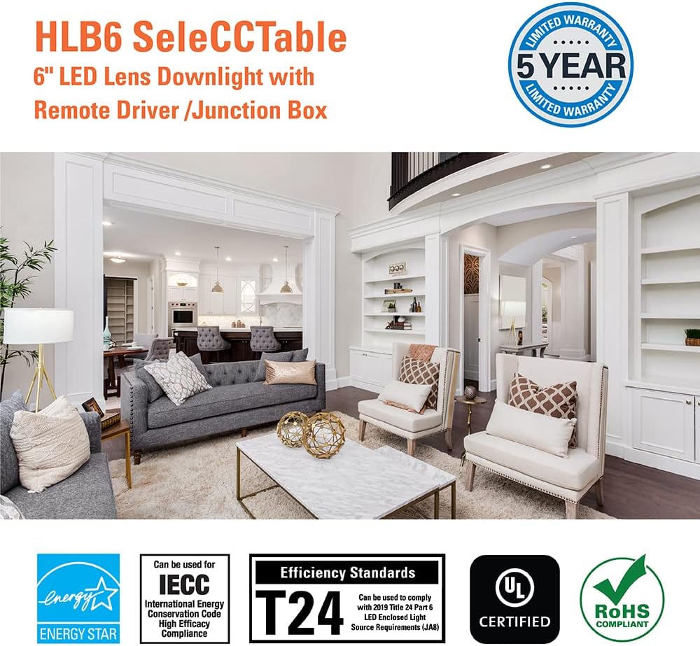 Enhance your home’s curb appeal or transform any space with HALO’s HLB recessed direct mount downlights! You can install these lights virtually anywhere, thanks to their canless design and ultra-slim, ½”” profile that avoids obstacles like joists and ducting; the HLB series can also safely come into contact with insulation. Customize your look with a 5-position switch that lets you control the color temperature— from warm white (2700K) to daylight (5000K). The HLB series is perfect for general area lighting applications in low to medium-height ceilings, delivering up to 750 lumens (4-inch model) or 1,150 lumens (6-inch model). Additional features ensure an air-tight installation that prevents light and air from escaping, saving energy. HLB is Wet Location-listed and perfect for both indoor and outdoor use—from soffit lighting that improves your home’s exterior appearance and security to walkways, showers, and more. These versatile lights are conveniently available in 4″” and 6″” sizes and individual and multi-packs. Engineered and tested in the U.S.A., HALO has been a contractor-preferred brand for over 65 years and is the gold standard in LED recessed lighting