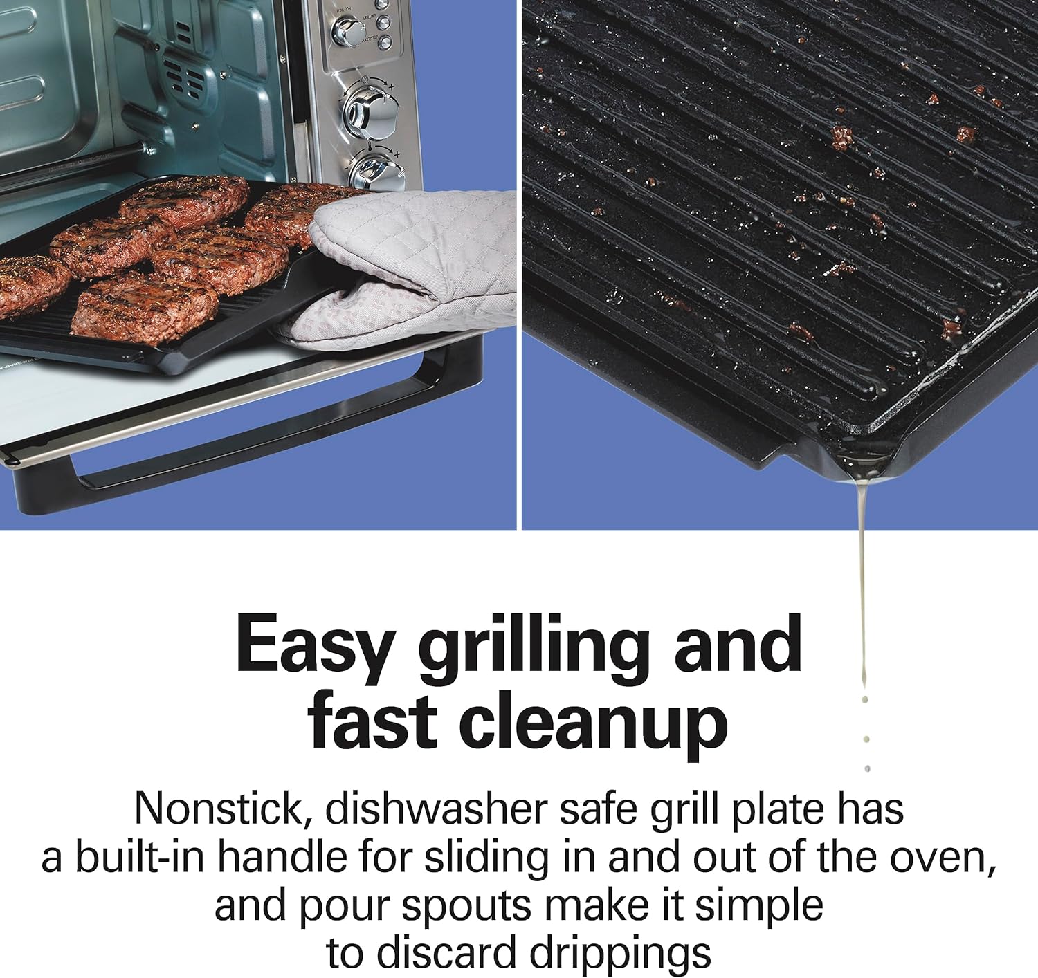 The Hamilton Beach® Sure-Crisp® Air Fry & Grilling Oven has 1700 watts and 6 digital cooking modes: air fry, grill, bake, broil, toast and pizza. With high searing temperature and a nonstick grill plate, you’ll enjoy outdoor grill flavors year-round.