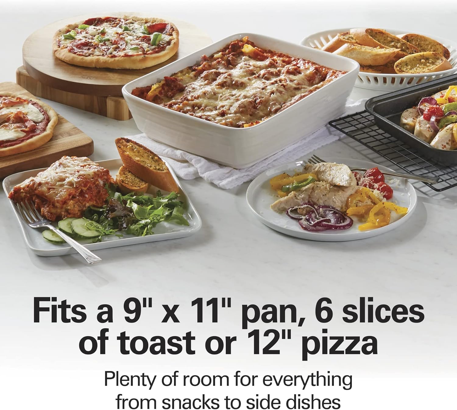 FITS A 9″ x 11″ BAKE PAN, 6 SLICES OF TOAST OR A 12″ PIZZA: This Hamilton Beach toaster oven has a spacious interior with plenty of room for cooking everything from snacks to side dishes.