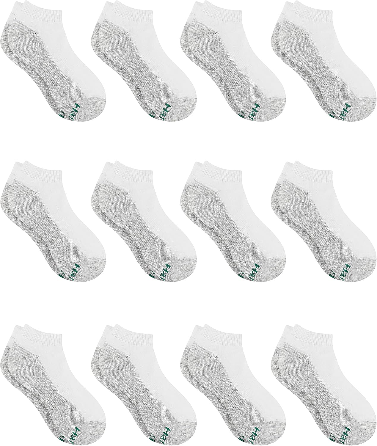 Hanes Boys’ Extra Durable Cushion Ankle Socks are a comfortable and dependable addition to his all-weather wardrobe and are a great value. Constructed with a soft cotton blend, these socks have a modern ankle length that’s versatile and works with both shorts and pants! Spend more time playing and less time matching with our EZSort sock matching system, which makes sorting kids’ socks so much easier.