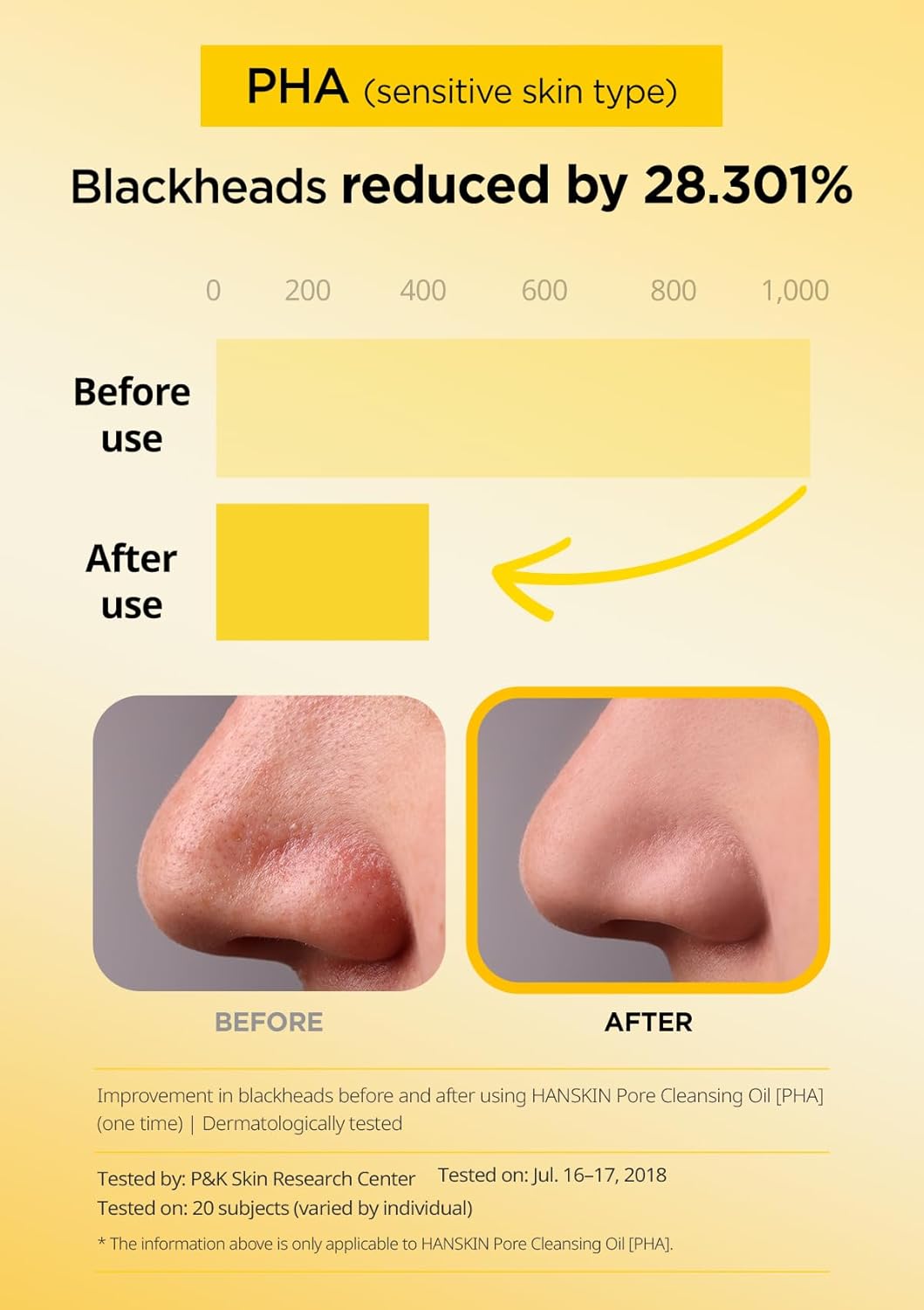 Waterproof Makeup Remover & Non- eye irritation: Effortlessly dissolve even the most stubborn waterproof makeup without causing eye irritation. Hanskin’s gentle PHA Pore Cleansing Oil purifies pores while being kind to your eyes, leaving your skin clean, refreshed, and balanced. 🌿✨