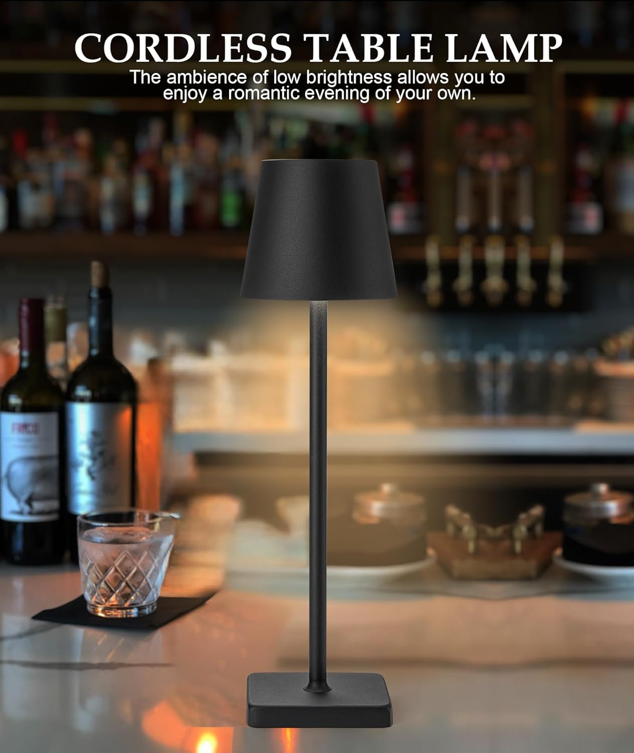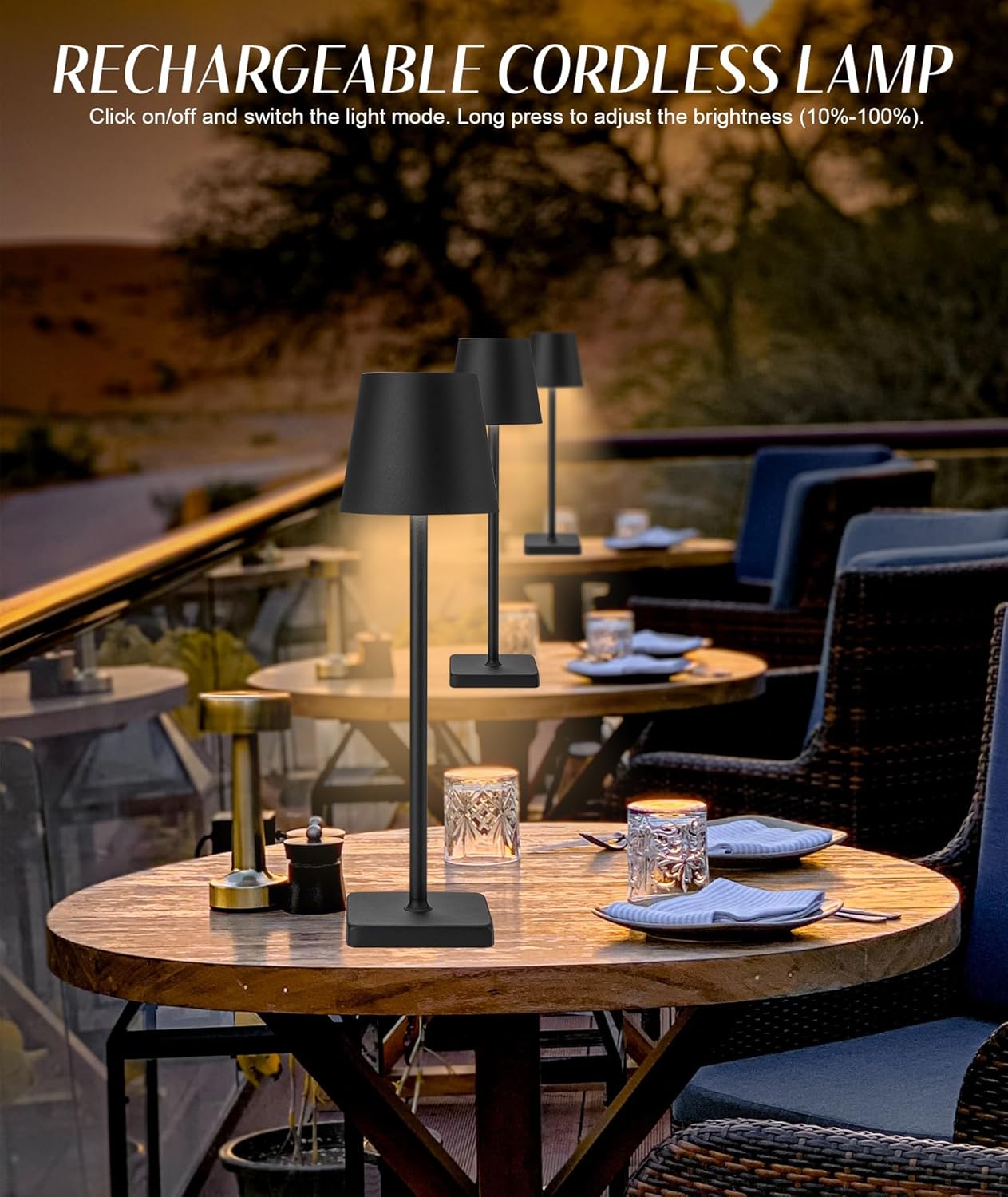 HASUN 2 Pack LED Cordless Rechargeable Table Lamp, 5200mAh Battery Operated Desk Lamp Table Light, Aluminum Shell, 3 Color Stepless Dimming Up Waterproof for Coffee Table/Indoor/Camping (Black)
