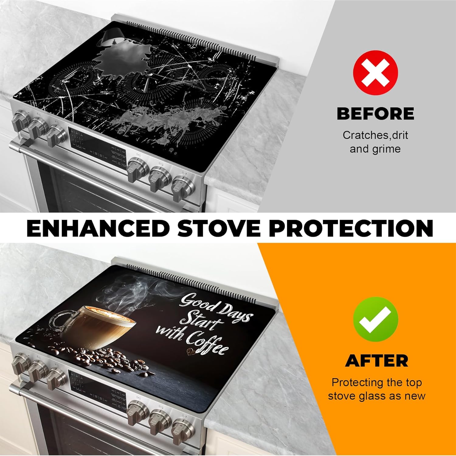 Secure & Safety-Focused Design:The anti-slip rubber coating ensures a stable fit, preventing accidental shifts or scratches to your stove surface. Heat-resistant up to 400°F for worry-free use. Do NOT put the electric cooktop cover on the electric range while it’s ON to prevent damage.