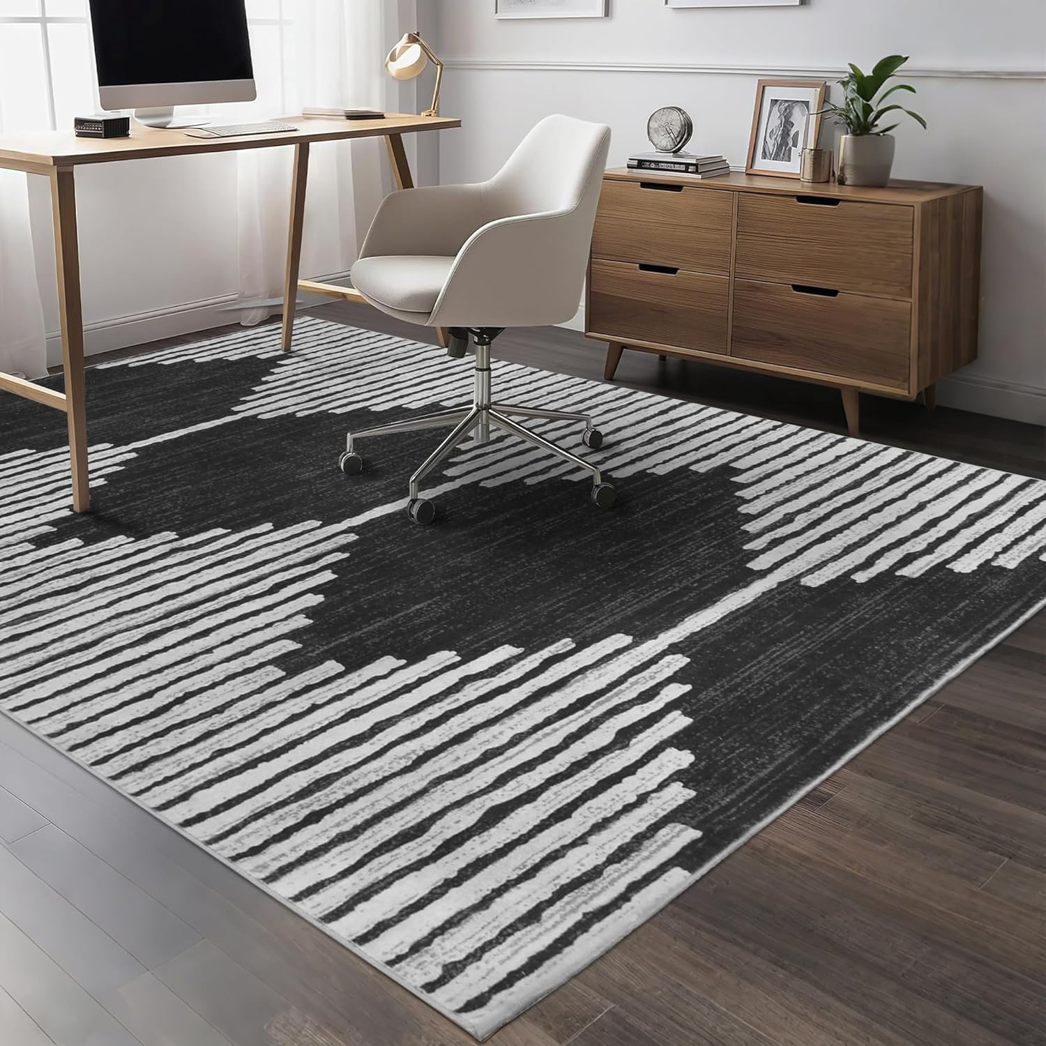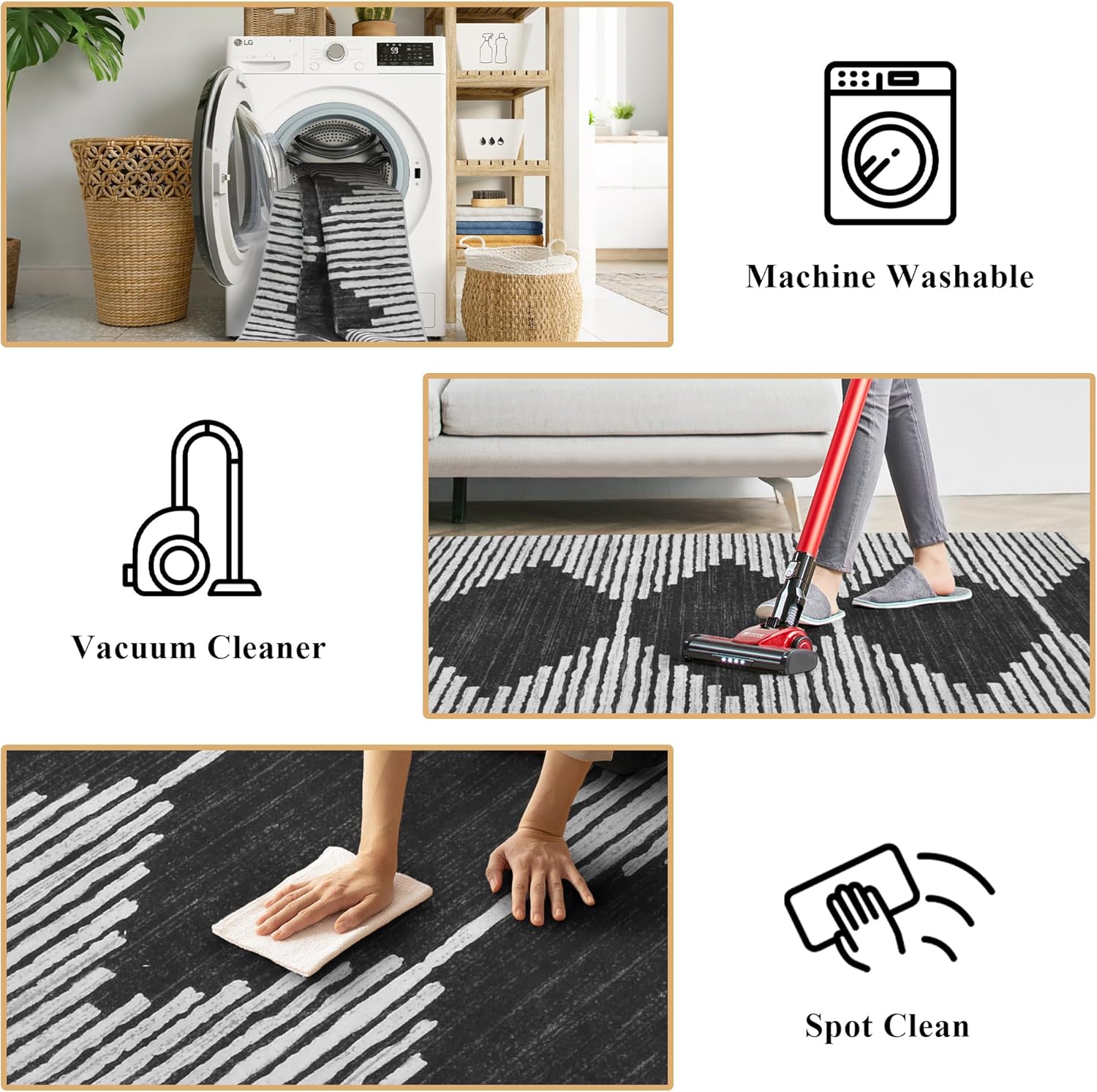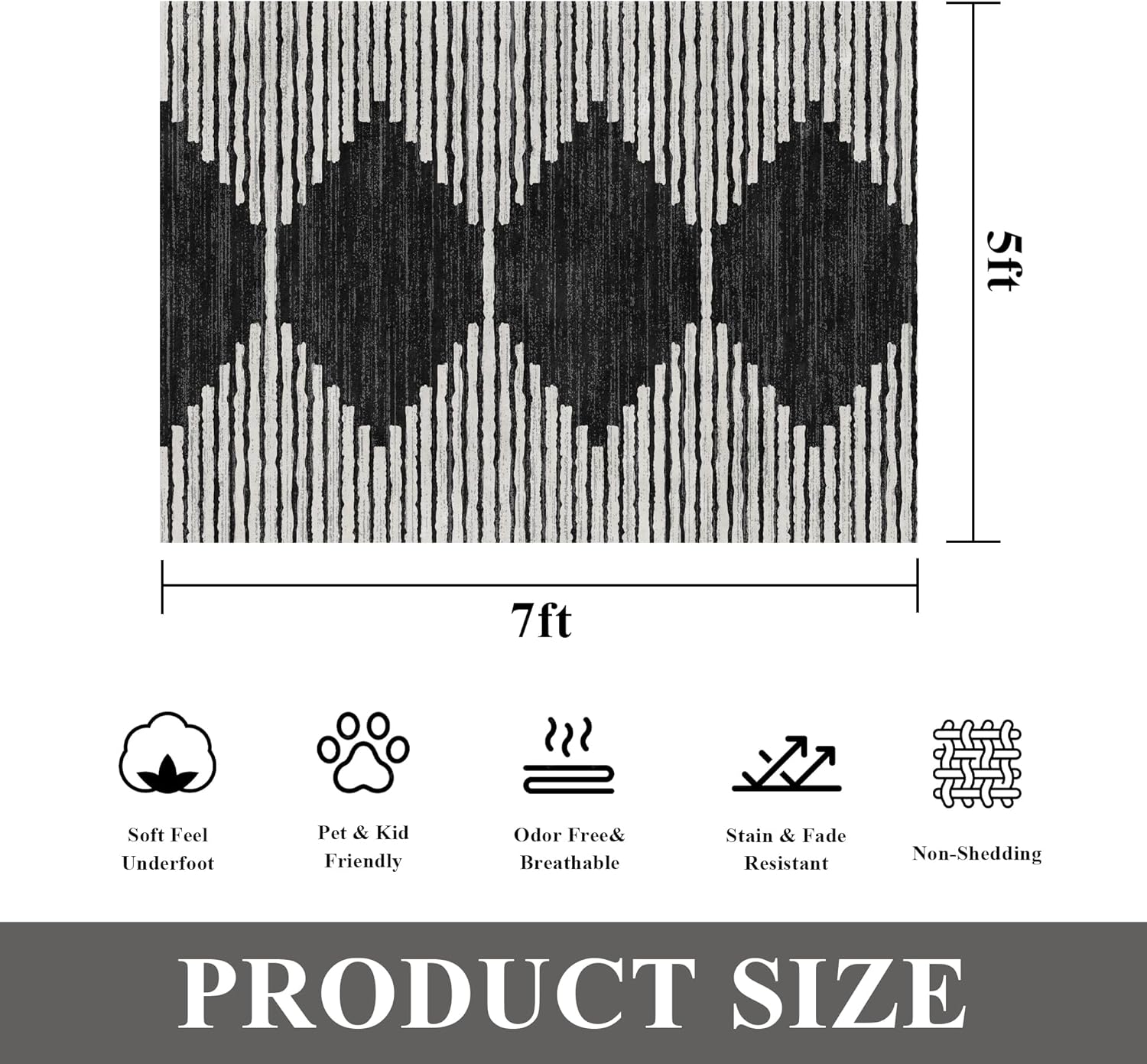 HelloTree Area Rug for Living Room 5×7 Washable Geometric Moroccan Rug Stripe Farmhouse Bohemian Minimalistic Non Slip Non Shedding Ultra Thin Soft Rug for Bedroom Office DiningRoom Nursery-Black