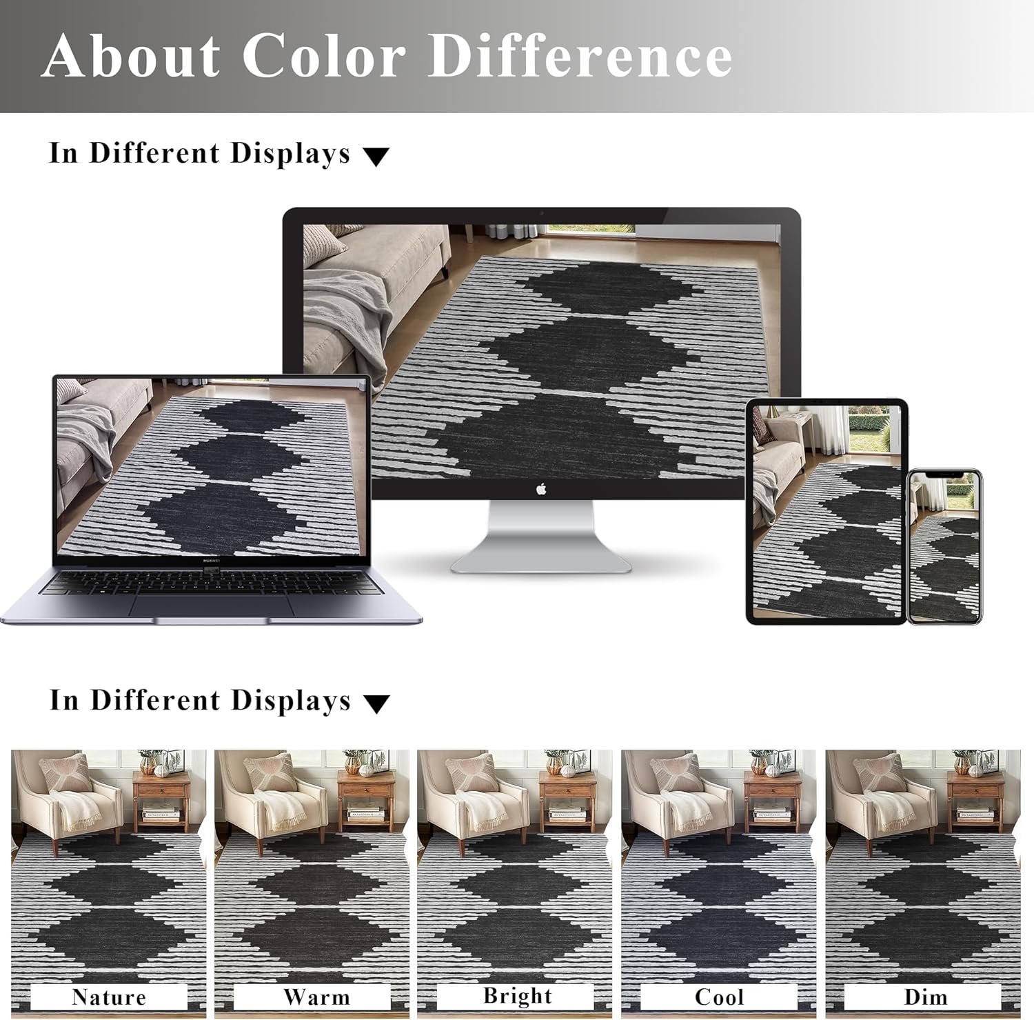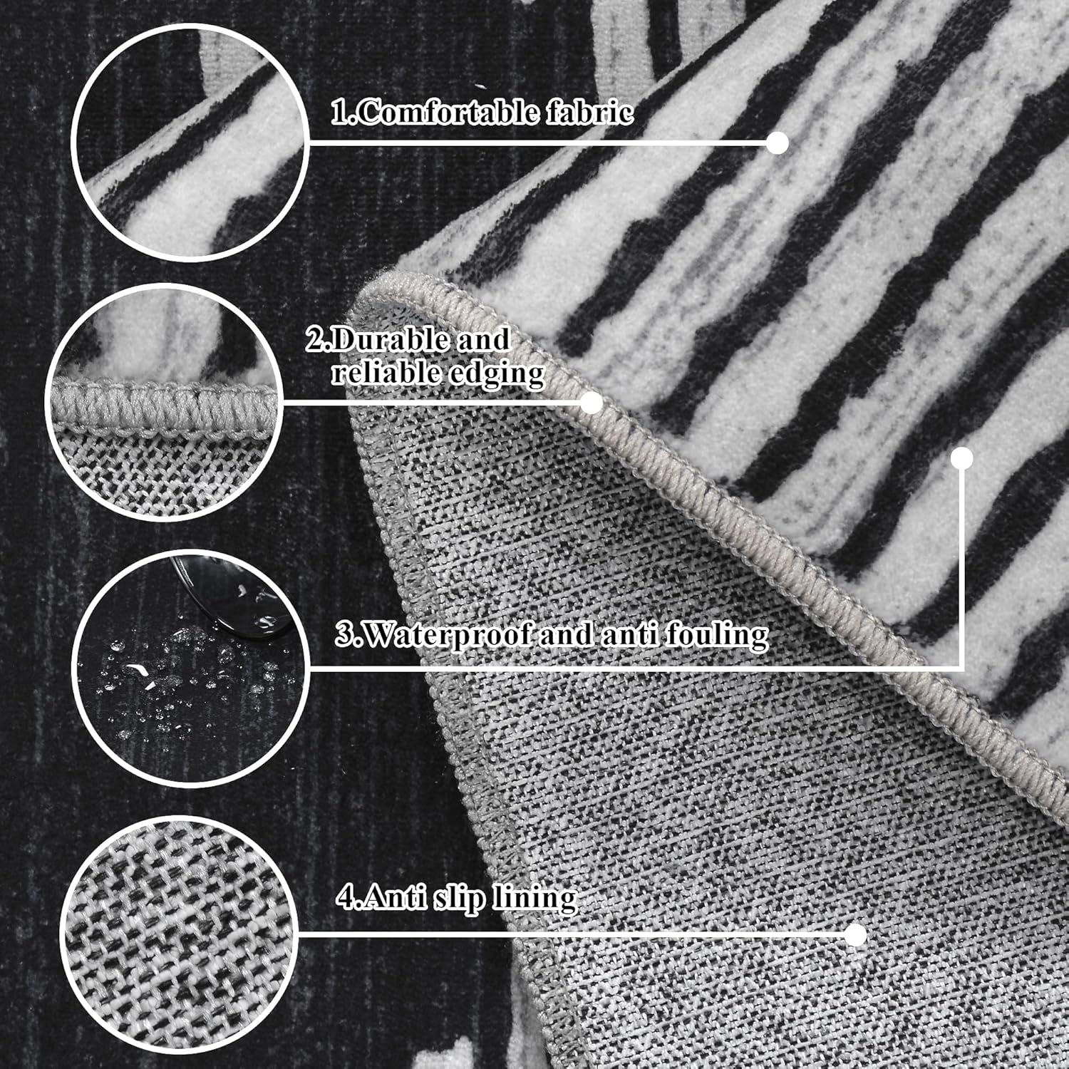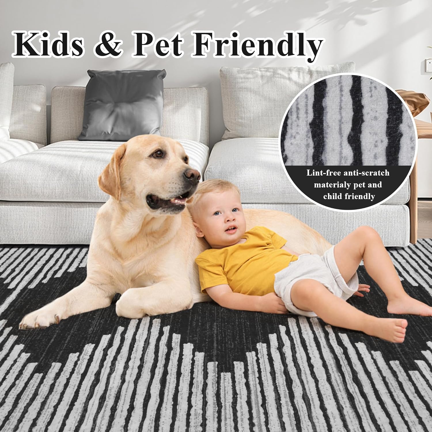 HelloTree Area Rug for Living Room 5×7 Washable Geometric Moroccan Rug Stripe Farmhouse Bohemian Minimalistic Non Slip Non Shedding Ultra Thin Soft Rug for Bedroom Office DiningRoom Nursery-Black