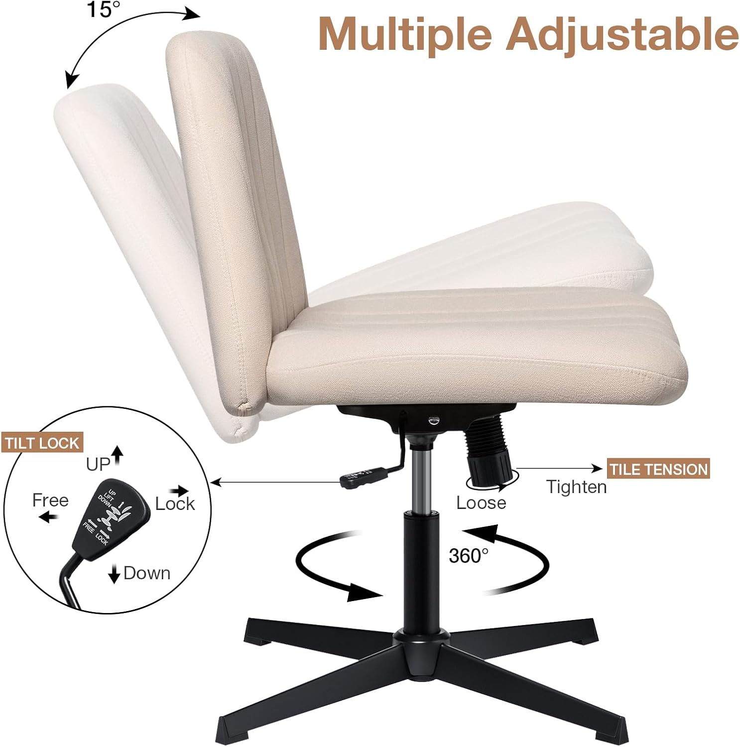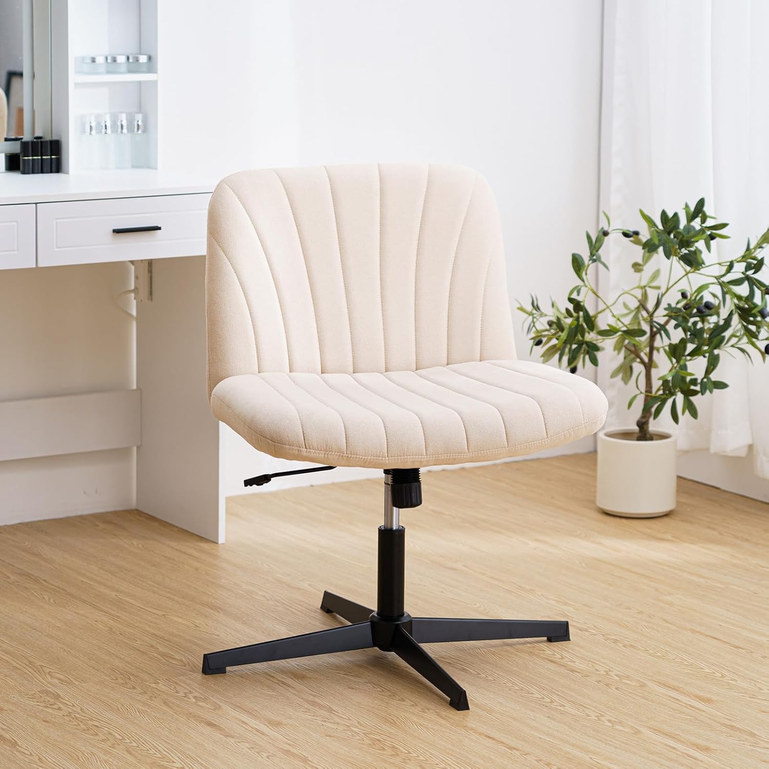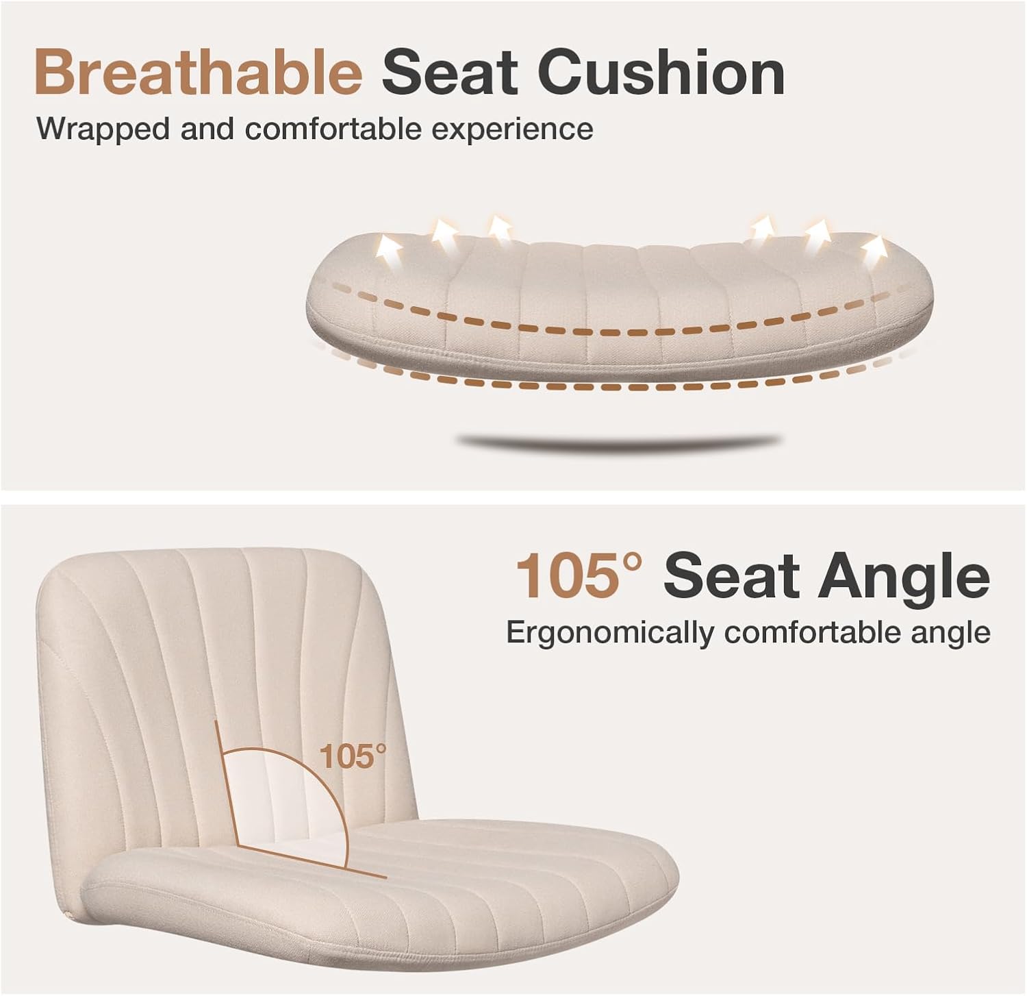 HOFFREE Criss Cross Chair Cross Legged Office Chair Home Office Chair Ergonomic Armless Chair for Desk Beige