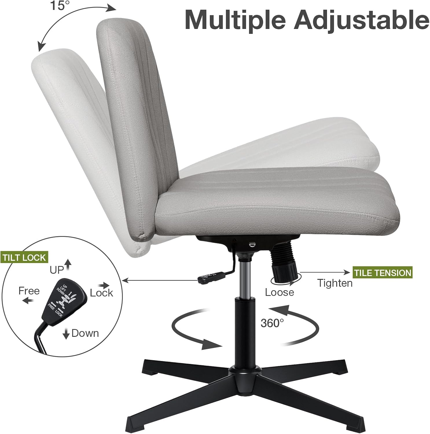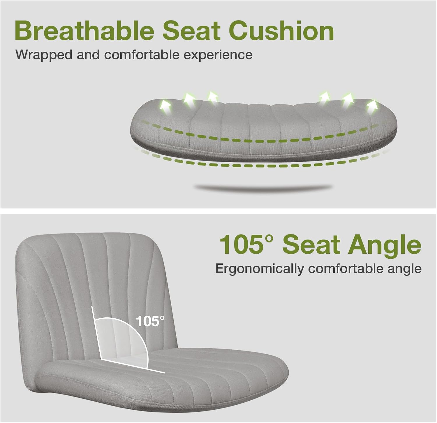 HOFFREE Criss Cross Chair Cross Legged Office Chair Home Office Chair Ergonomic Armless Chair for Desk Grey
