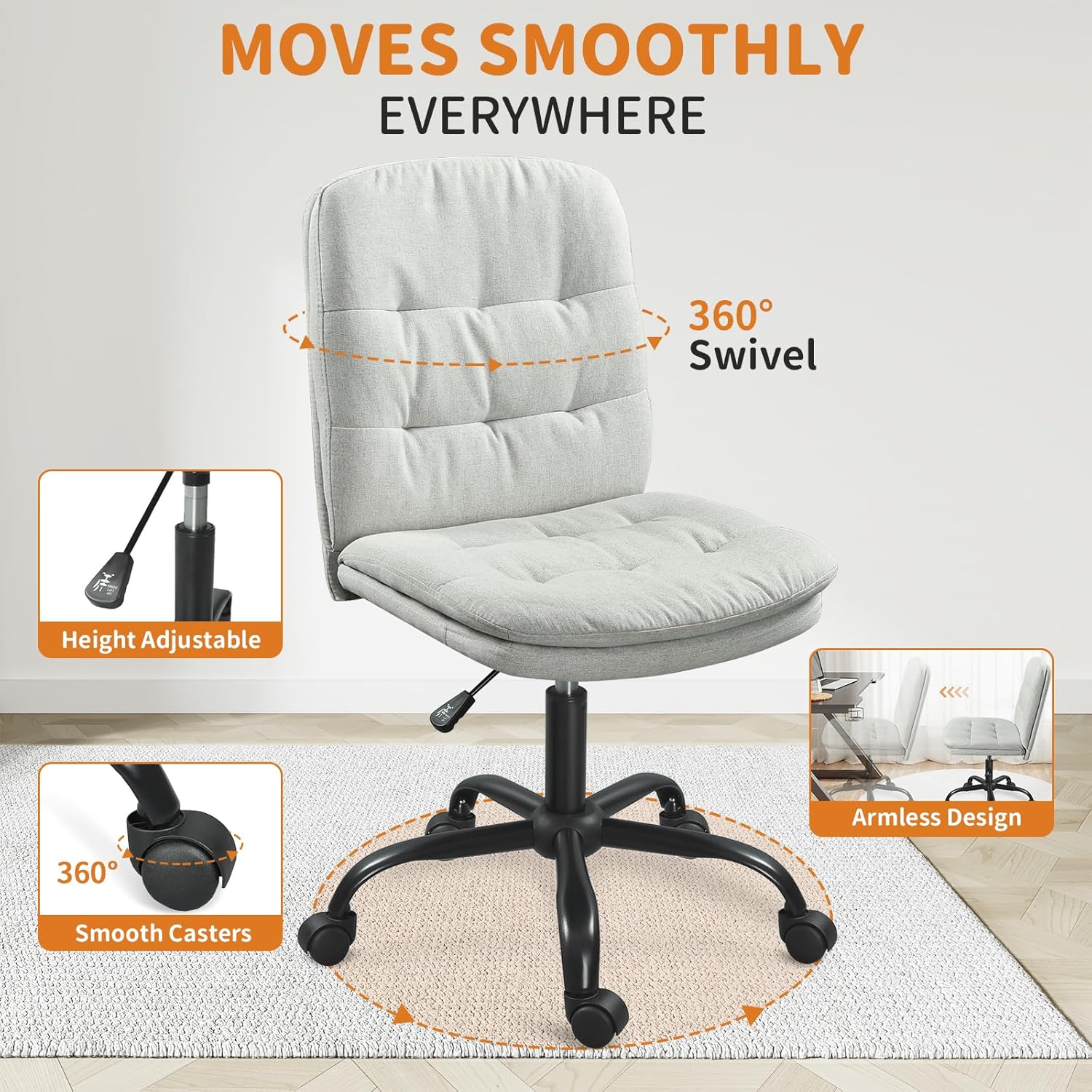 【Breathable and Quality 】FabricMade of linen fabric, this home desk chair comfy has a matte texture, taking into account the beauty and comfort, suitable for a variety of room decorating style. The fabric is breathable and environmentally friendly. The wheeled state is perfect for use as an office chair or computer chair, while the footed state is suitable for use as a makeup chair or reading chair.