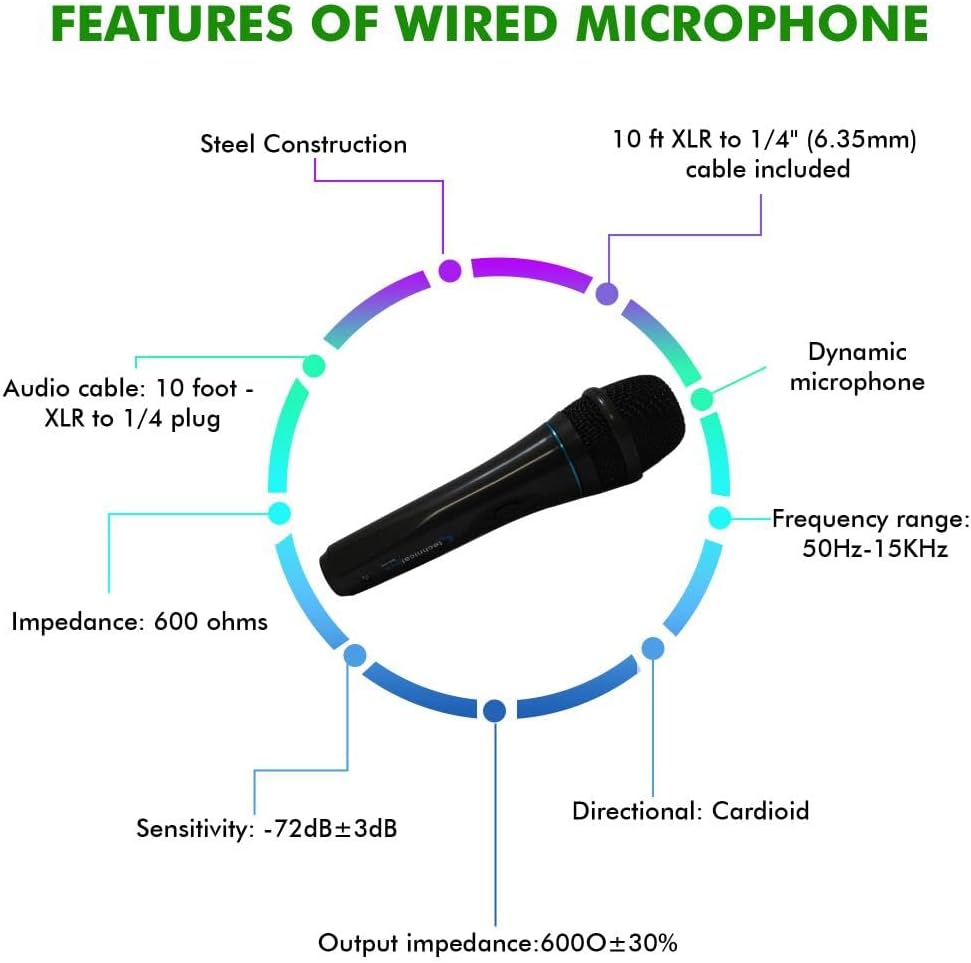 2 QTY OF PROFESSIONAL DYNAMIC MICROPHONES: Each microphone comes with durable steel construction and a 10 ft XLR to 1/4″ cable for easy connectivity. With a frequency range of 50Hz-15kHz, cardioid directional pattern, 600 ohm impedance, and -72dB sensitivity, these microphones are perfect for karaoke, weddings, parties, DJs, church services, and more, providing clear, high-quality sound.
