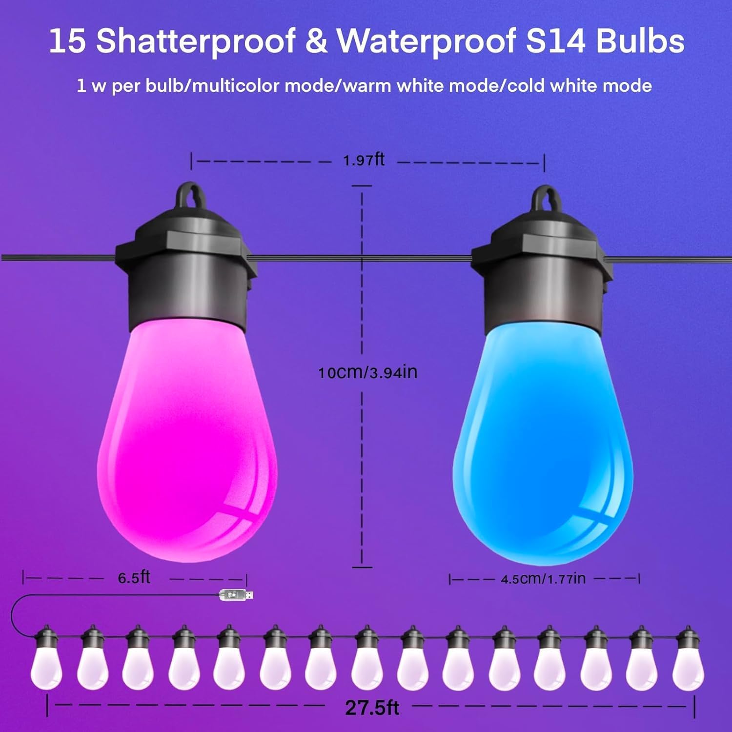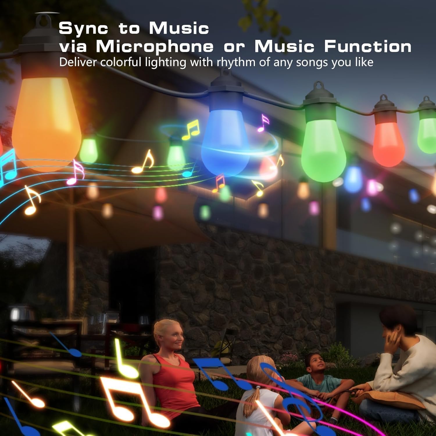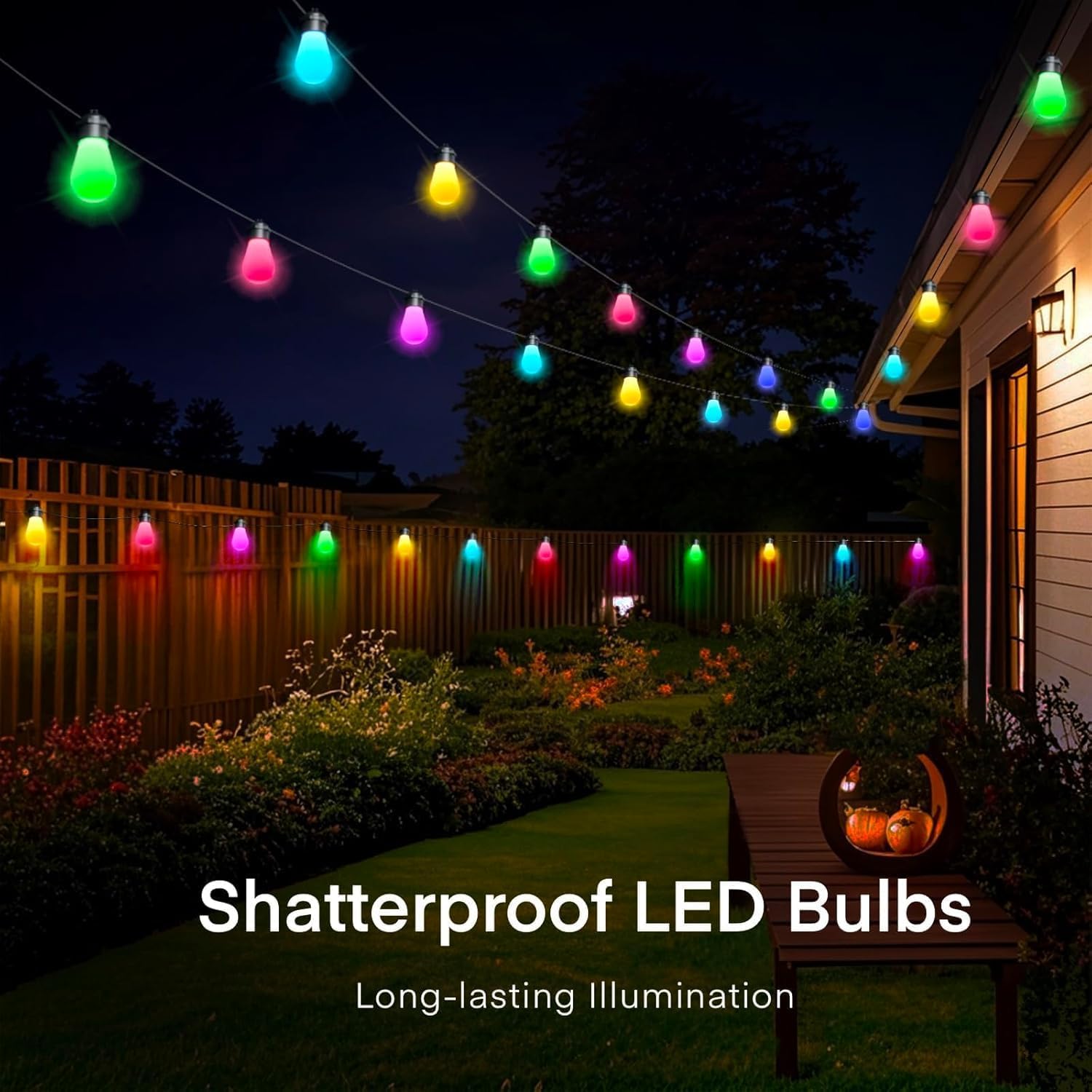 Honche Smart Outdoor String Lights, 36FT Outdoor Lights with 15 Dimmable RGB LED Bulbs, Color Changing 213 Scene Modes for Patio, Backyard, Garden,Balcony, Camping,Waterproof,Remote/APP Control,USB