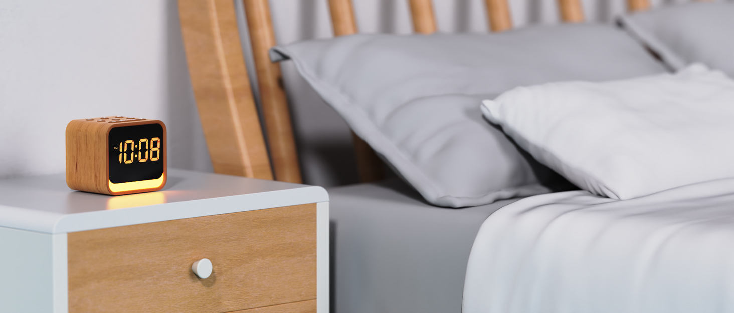 Housbay Wooden Sound Machine Alarm Clock for Bedrooms – Gentle Wake-Up with Birdsong, White Noise for Sleeping, Small Digital Clock for Phone-Free Routine