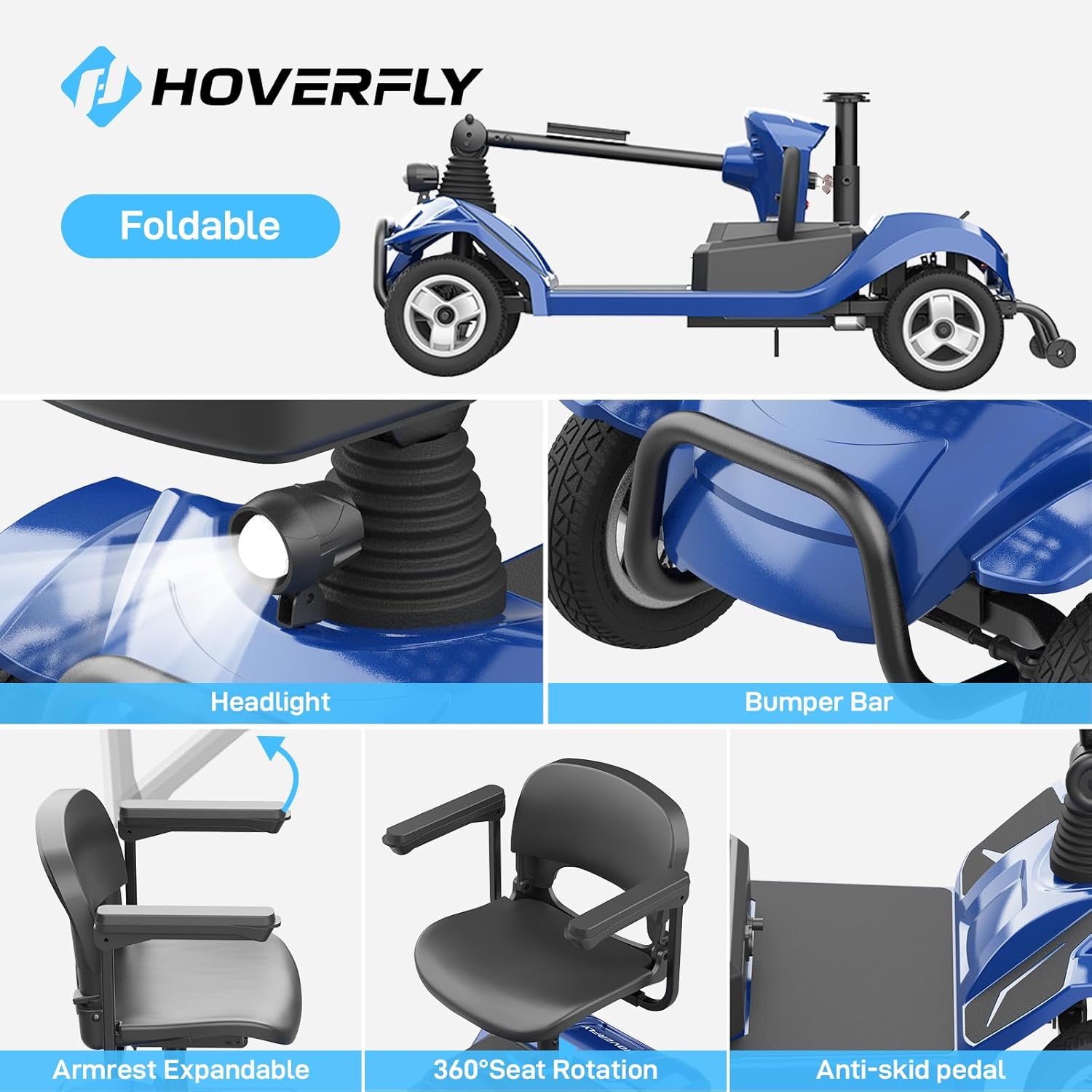 【Easy to Disassemble & Transport】Take your mobility anywhere! The HOVERFLY T4 quickly disassembles into separate light parts like the basket, removable seat, and detachable battery. Compact enough to fit easily in the trunk of most cars, perfect for travel or daily errands.