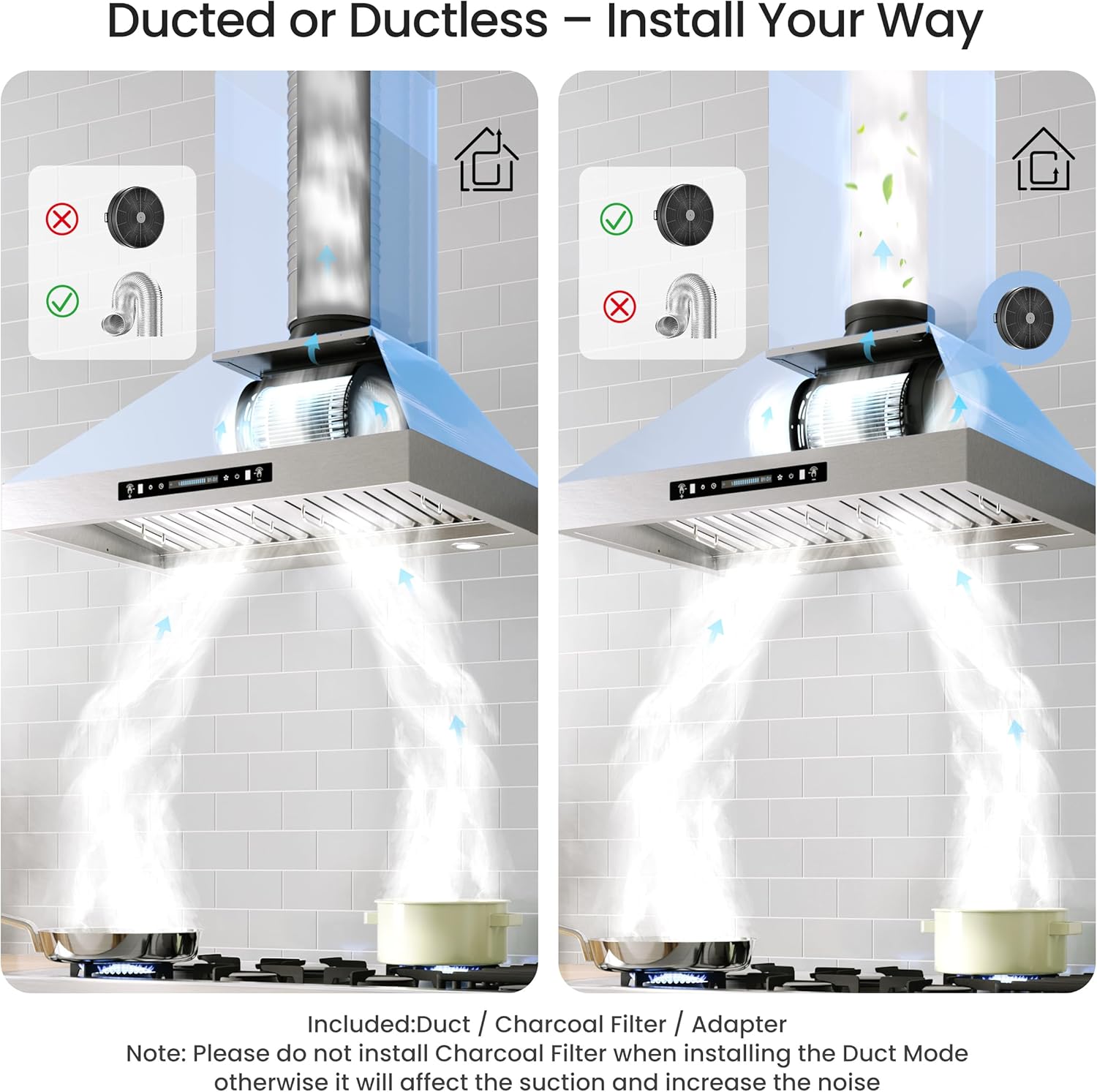 【Powerful Airflow】: Maximum 900 CFM large airflow with good balance fans efficiently removes large amounts of smoke and cooking odors with ease from the air in your kitchen.