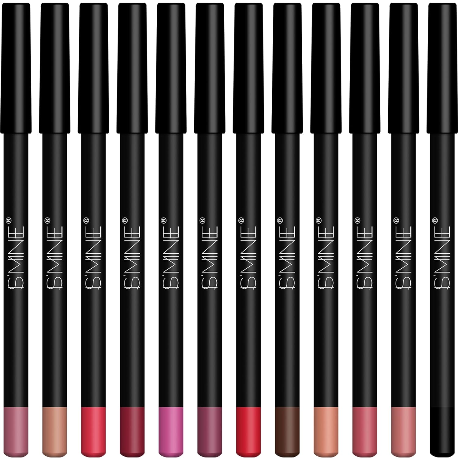 【12 Popular Colors】 You will get 12 pack different colors velvet slim high pigmented makeup lip liners set (12pcs a set), super value pack 12 pieces!
