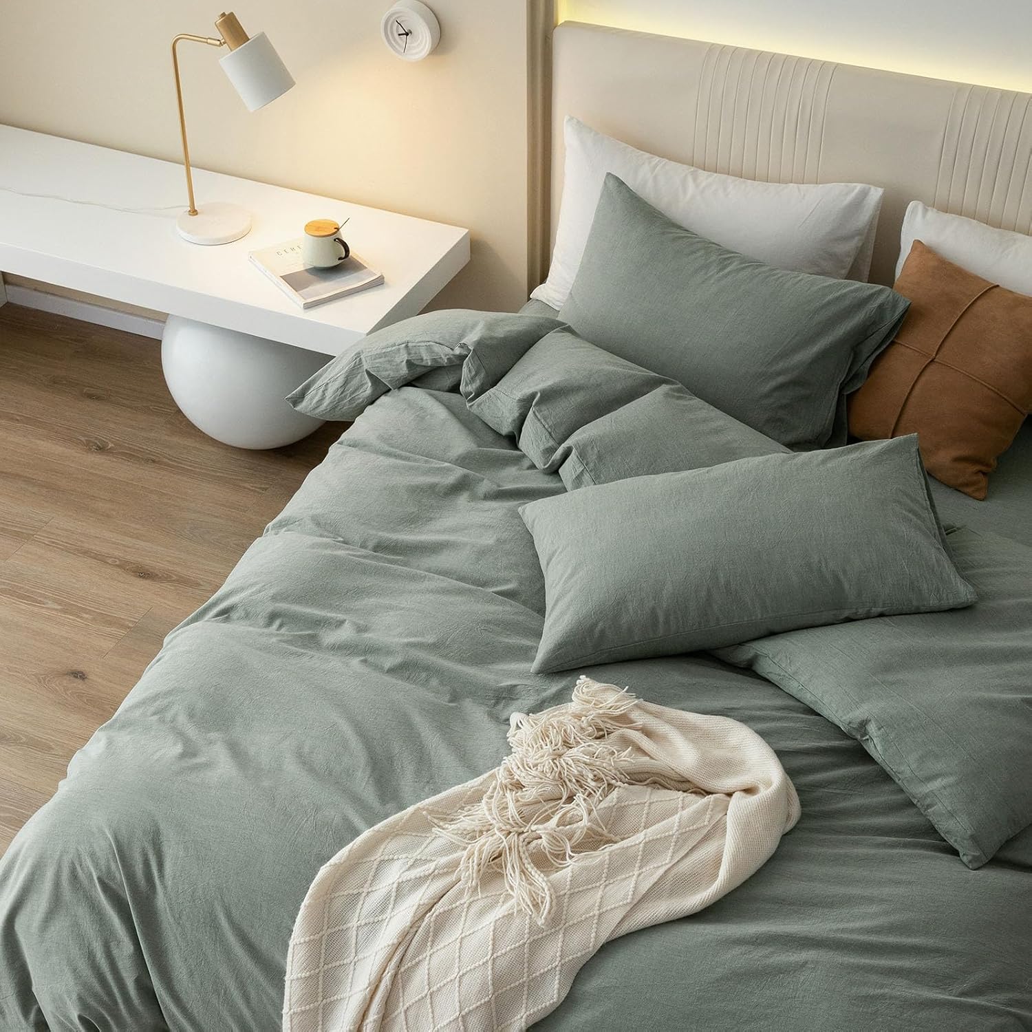 ClASSIC AND STYLISH: The nature wrinkled linen like fabrics and the soft colors presences a cozy and stylish, which meet all your imagination of high-quality bedding. It can also be used as quilt cover or comforter cover to decorate your bedroom and provide you with a comfortable sleep and a pleasant mood. By using duvet cover set effectively, you can make your bedroom look cozy and stylish at once.
