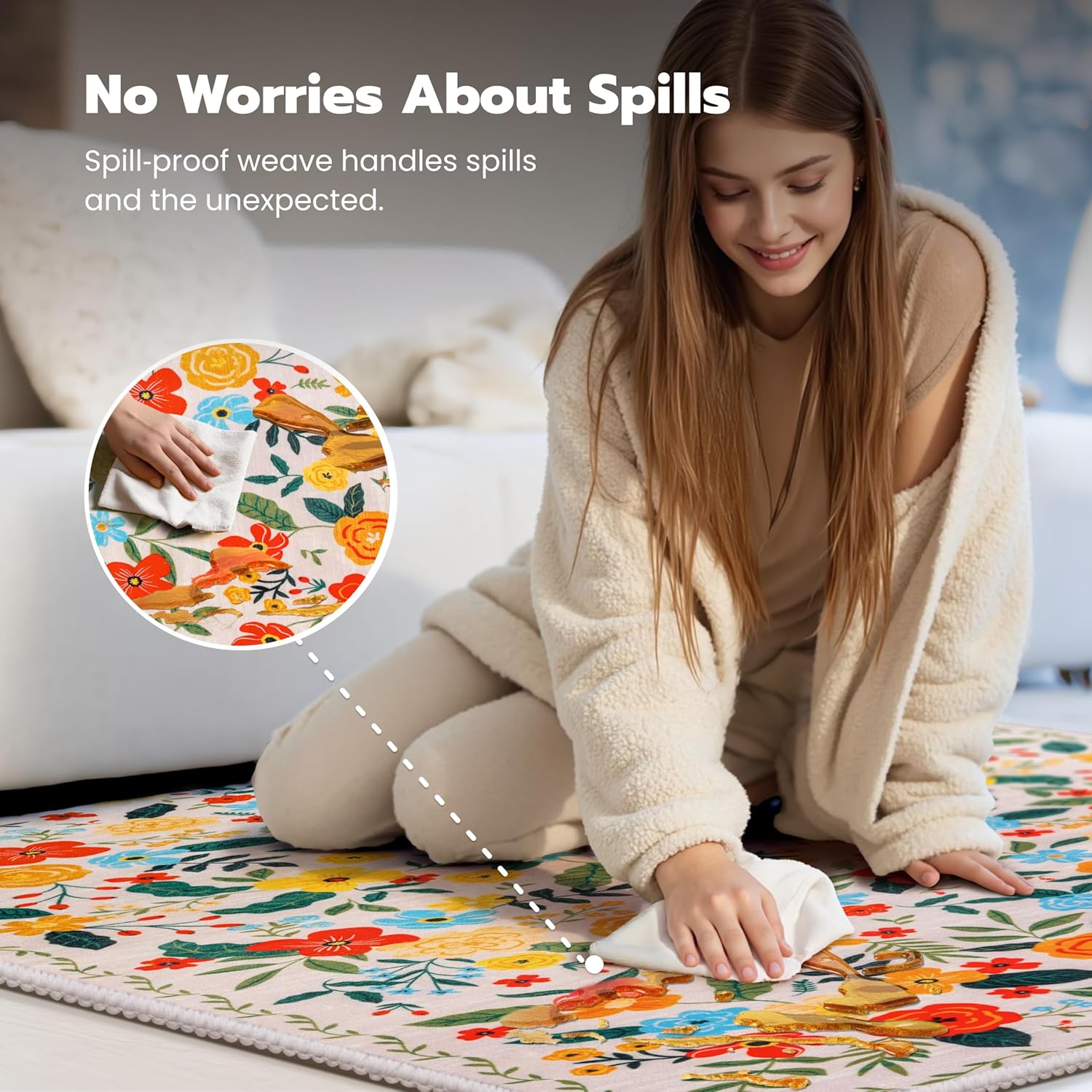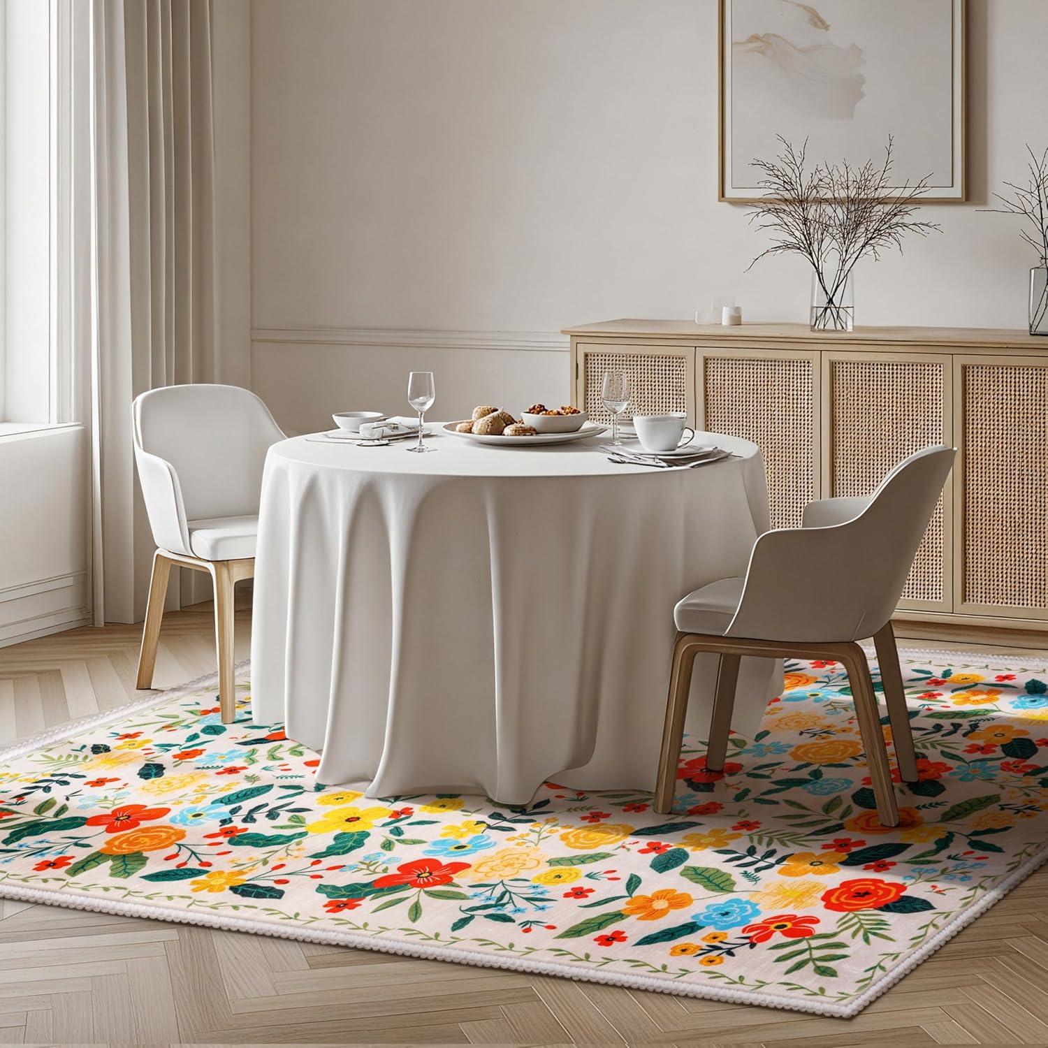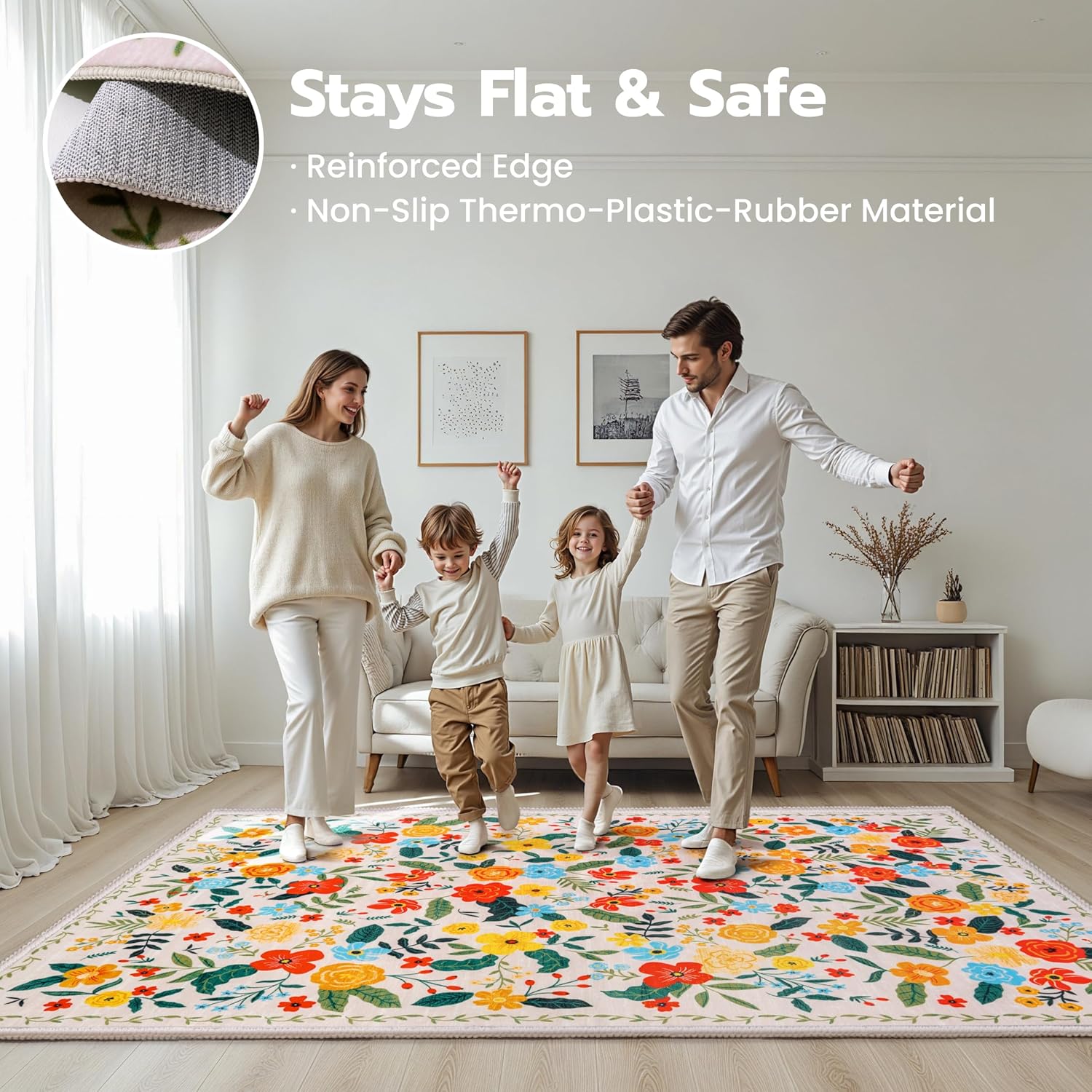 Joiedomi 5’x7′ Area Rugs for Living Room Non-Slip Washable Rug with Rubber Backing Large Soft Boho Floral Carpet for Bedroom Kids Nursery Dining Room (Beige)