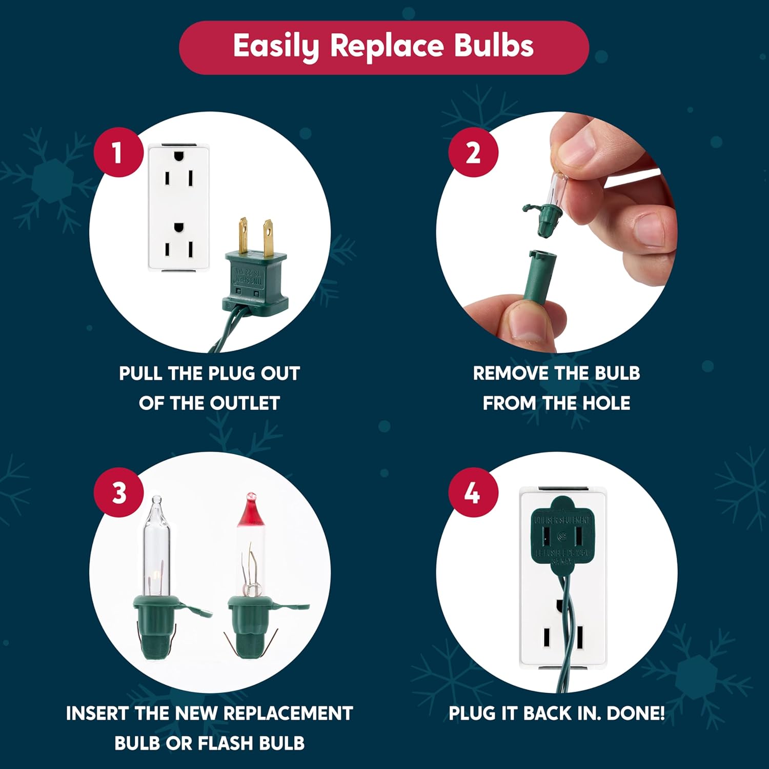 INDEPENDENT CIRCUIT & REPLACEMENT BULBS – Enjoy a hassle-free holiday! Our lights feature an independent circuit system; if one bulb burns out, the rest stay lit. The set includes 2 spare bulbs, a replacement fuse, and 2 test flash bulbs., ensuring your display stays bright throughout the season without needing a full replacement.