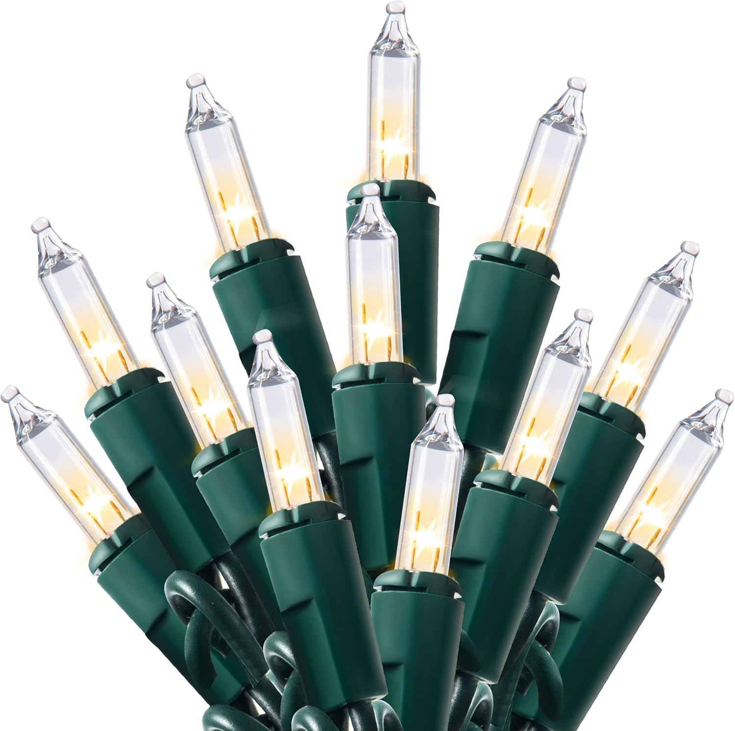 100 WARM WHITE MINI LIGHTS – Our Xmas string light total lighted length is 19.4 feet. Total wired length is 21.4 feet. Clear bulb spacing 2.36 inches. Create a magical atmosphere with Old-fashioned tradition bulbs emitting a classic, festive glow. The warm white light is cozy,offer a vibrant, joyful display for any celebration.