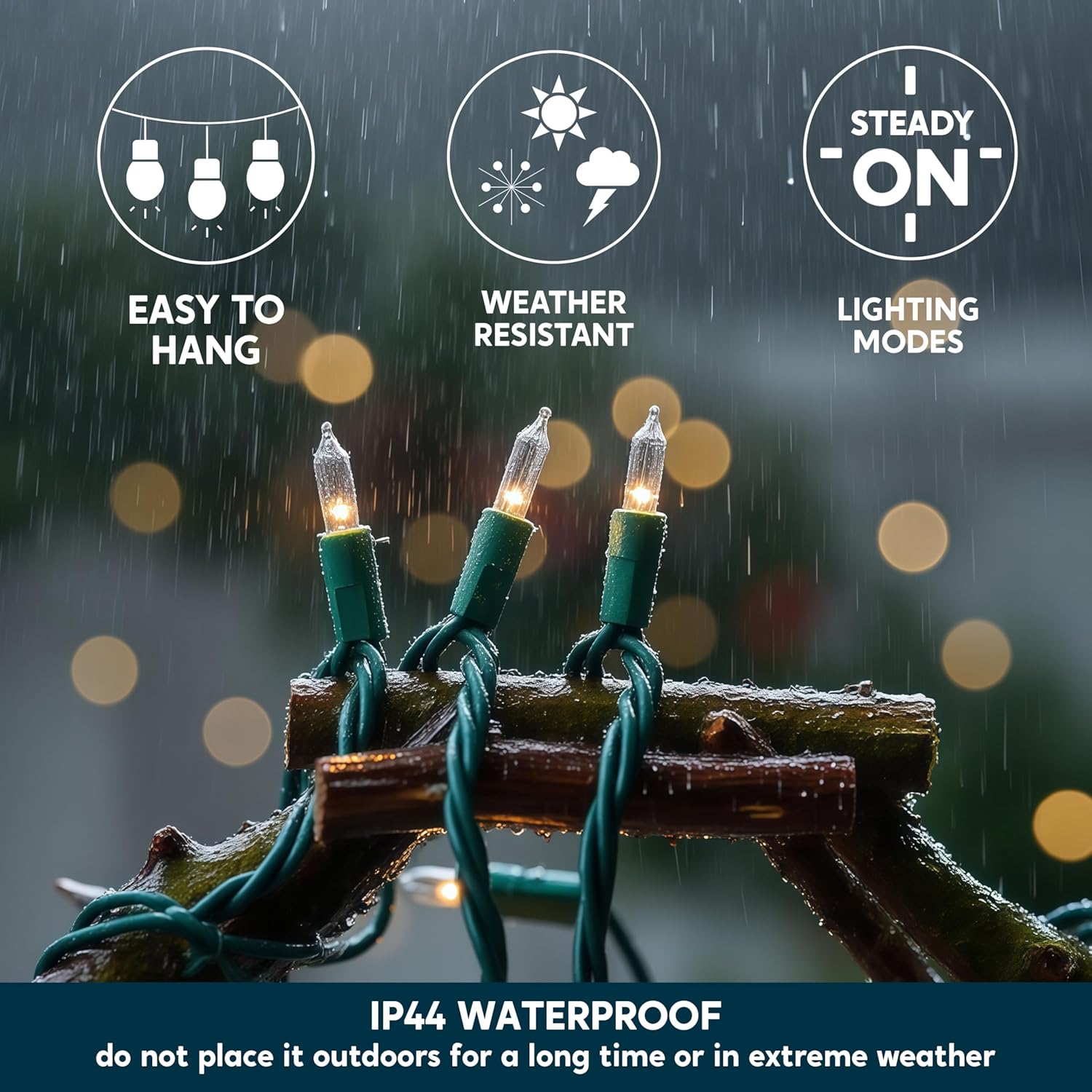 UL588 CERTIFIED FOR INDOOR & OUTDOOR SAFETY – Ensure holiday peace of mind with our string lights, rigorously tested to meet US UL safety standards. The IP44 waterproof design and durable construction withstand rain and snow, making them perfect for Christmas tree decorations, garden, patio, and year-round use.
