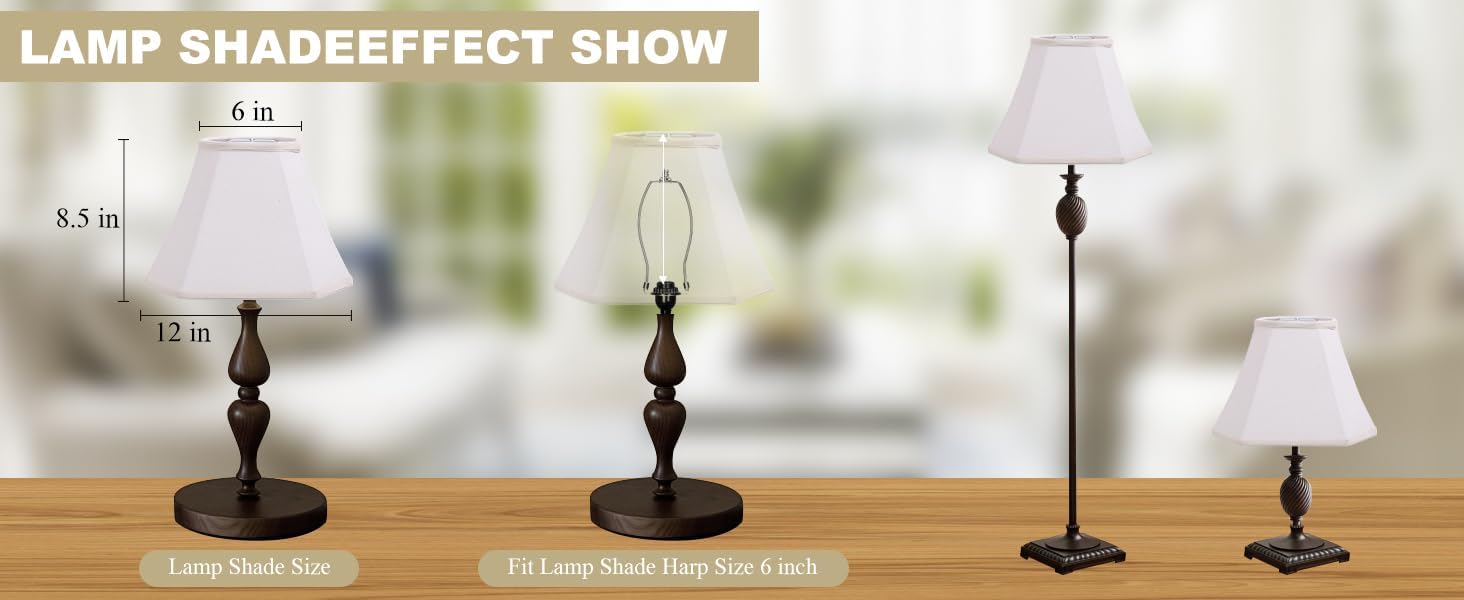 【Shade Dimension】 Top diameter: 11.6 inch , bottom diameter:12.6 inch, height: 9.8 inch, screw thread diameter: 0.43 inch. Medium size suits most table lamps and floor lamps. Please check the shade size carefully to make sure they are suitable for your light fixtures before purchasing.