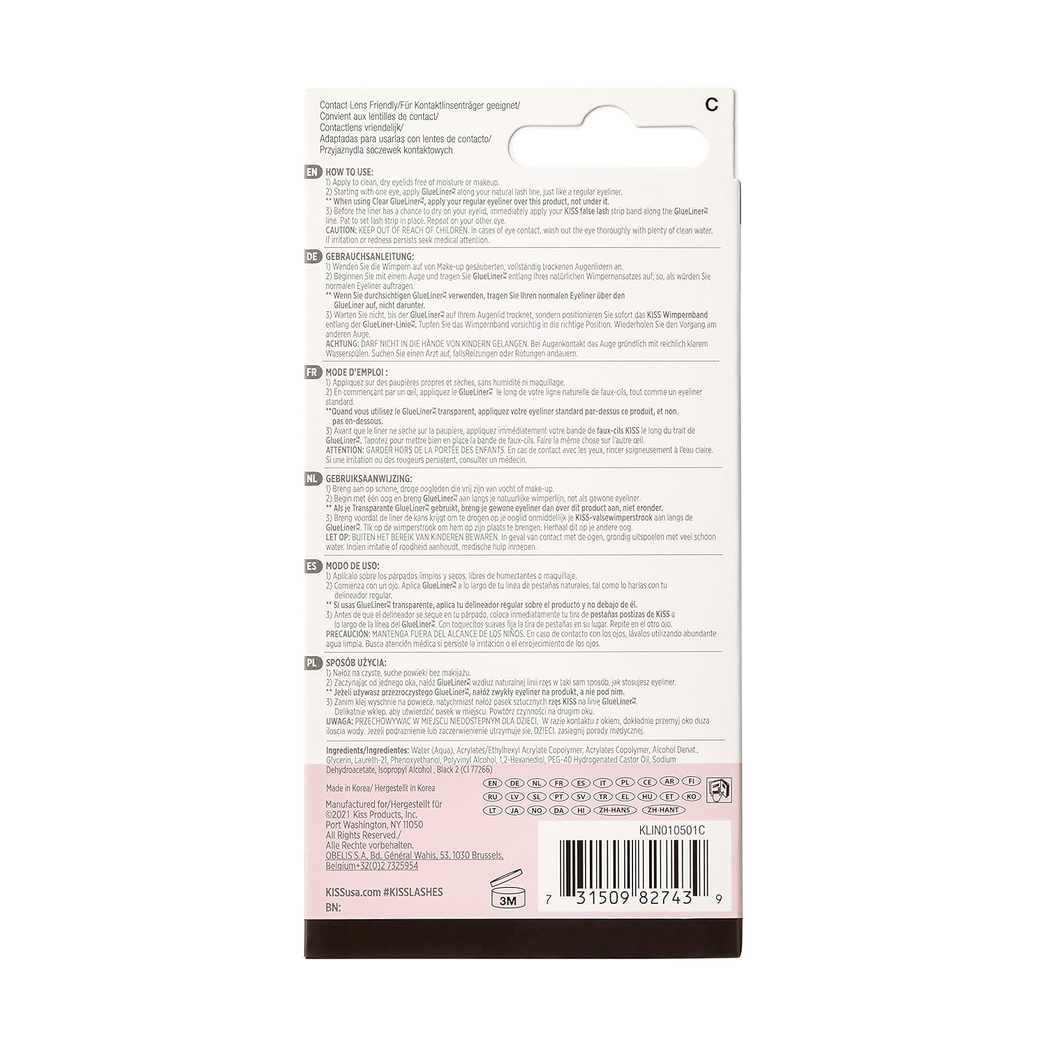 All that was tricky about gluing on false eyelashes is a thing of the past! Kiss Lash GLUEliner makes false eyelash application absolutely foolproof! No more messy eyelash adhesives to deal with – applies like eyeliner, dries like glue. This lash glue glides flawlessly along your lash line using the fine point felt tip applicator, ready for your favorite falsies to adhere to in a seamless way. As easy as 1-2-3, simply line your lid generously with as much GLUEliner as needed.