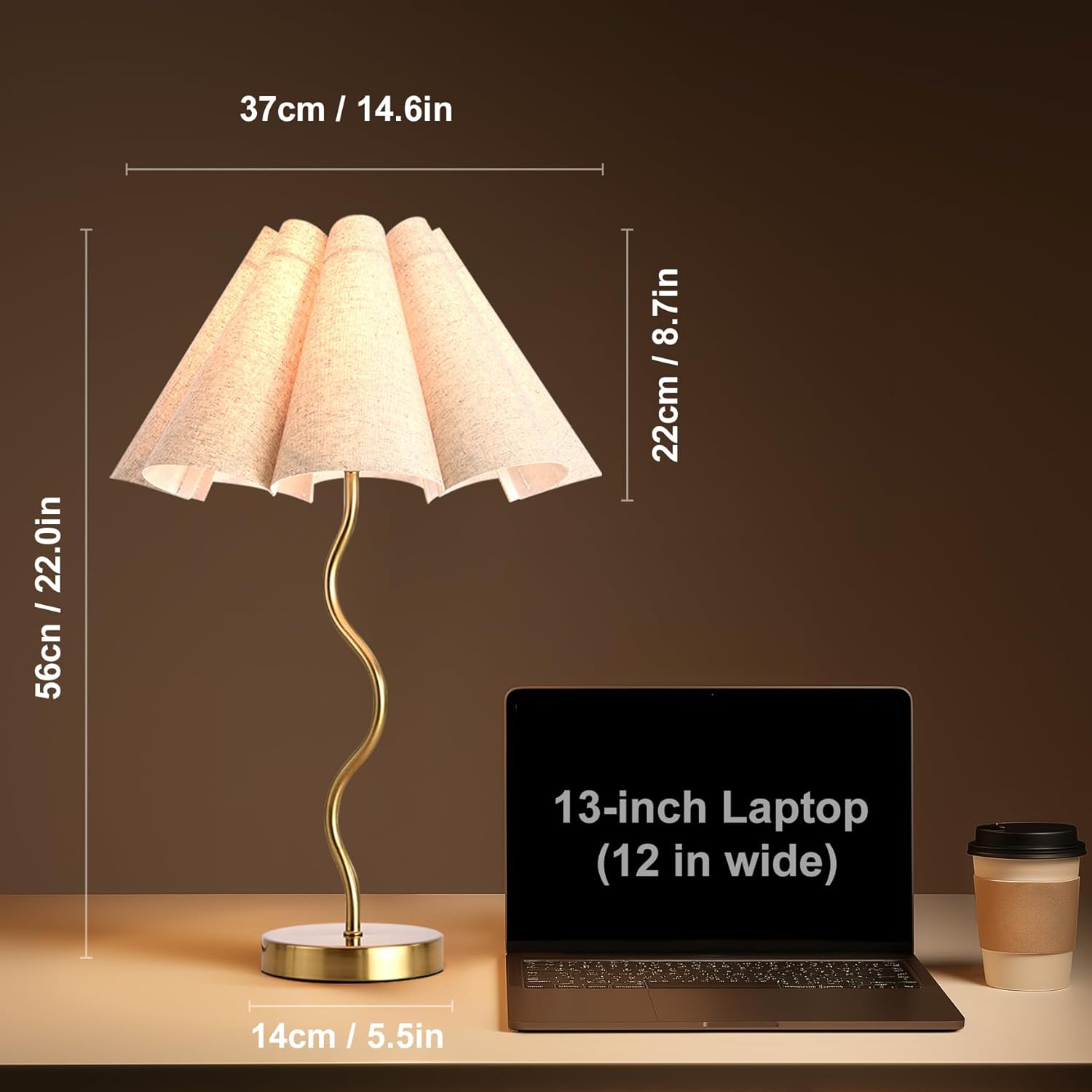 KUNJOULAM Small Table Lamp, Bedside Nightstand Lamp with Umbrella Form Fabric Lampshade, Morden Mini Desk Lamp for Bedroom Home Office Decor