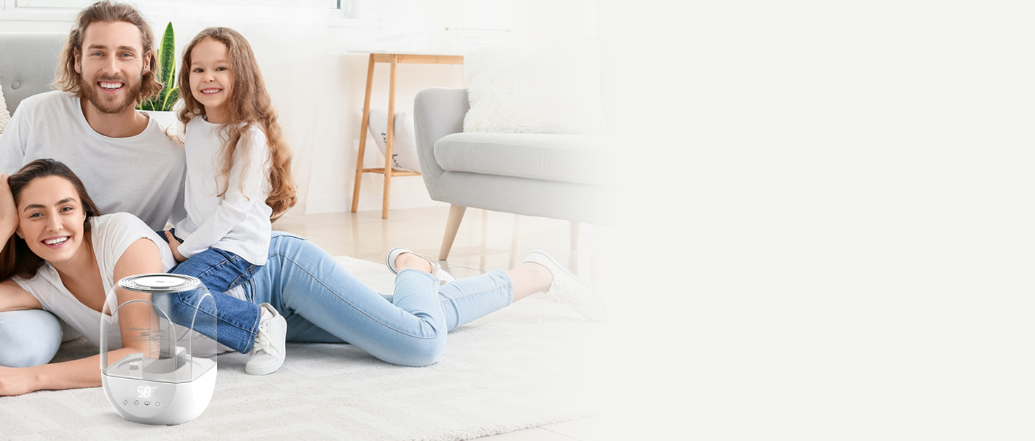 KZF 4L Top Fill Humidifiers for Bedroom & 60H Runtime – Cool Mist Humidifier, 3 Mist Levels, 8H Timer, Essential Oil Tray, Humidity Display, Quiet for Bedroom, Baby, Plants, Large Room