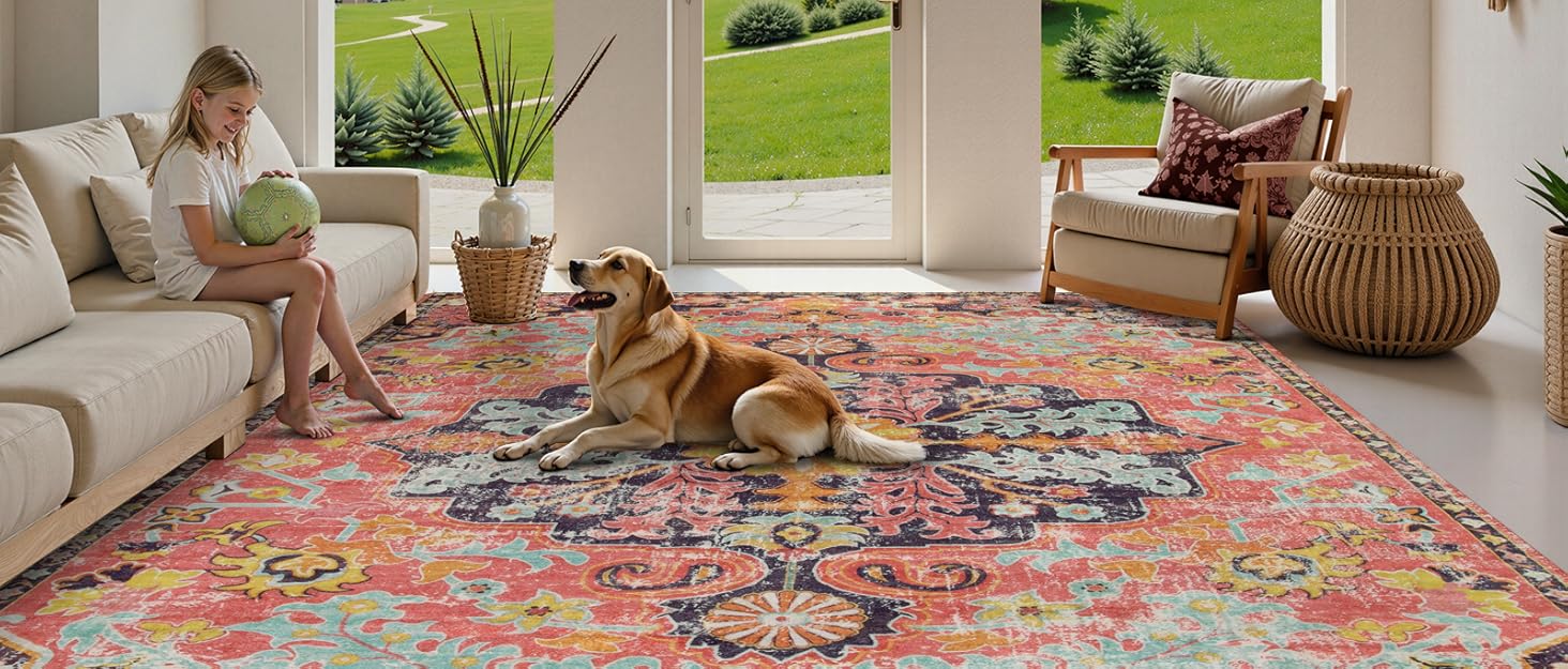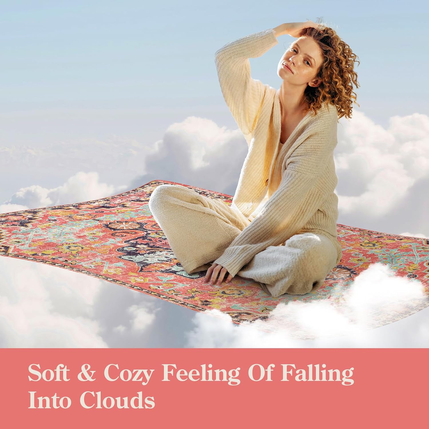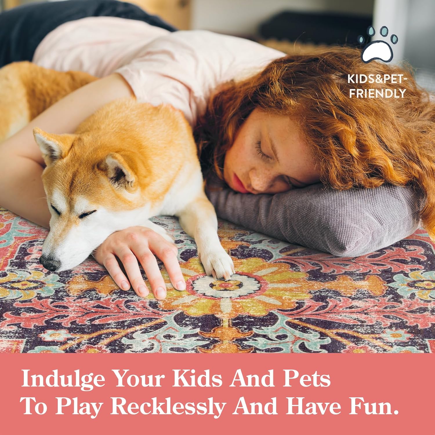 Lahome Bohemian Floral Medallion Round Rug – 4Ft Hot Pink Soft Round Area Rug Bedroom Kitchen Mat, Turkish Washable Indoor Floor Accent Bathroom Carpet for Nursery Living Room Home Office Hallway