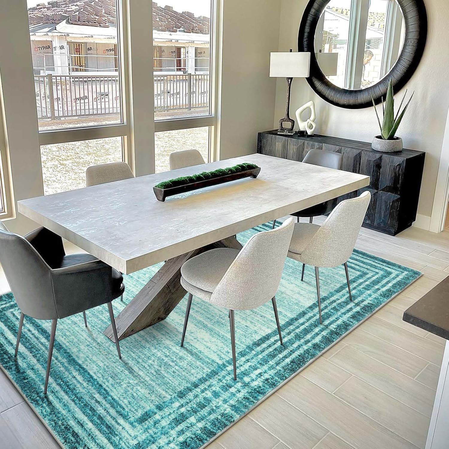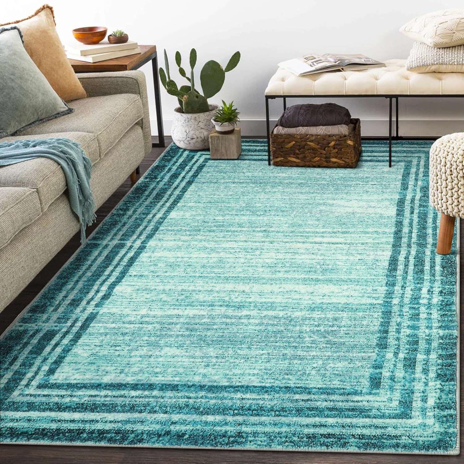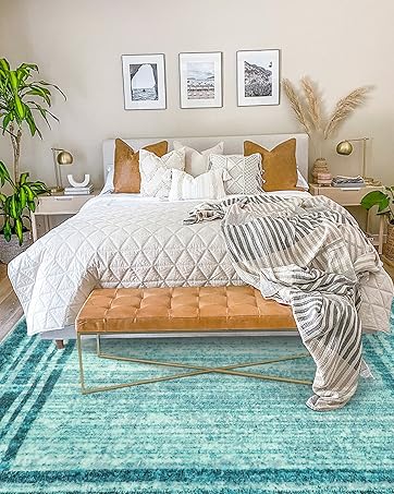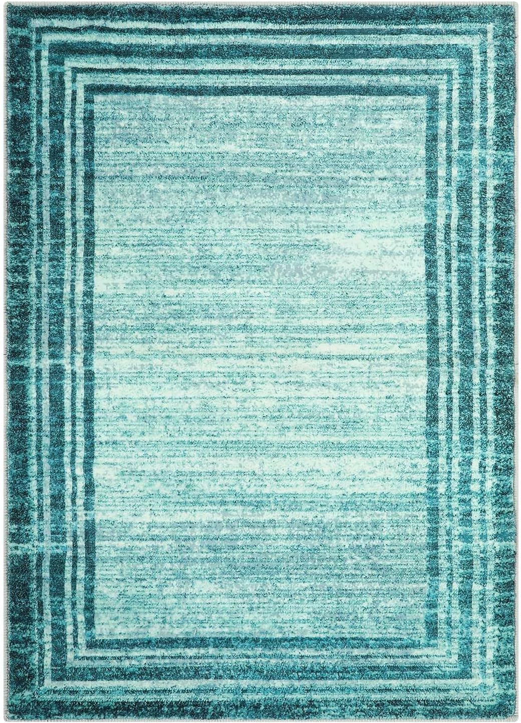 [MODERN BORDERED STYLES]: Feature a clear and defined dark solid-colored border that contrasts with light color of the rug’s main body, creates a clean and minimalist look, and a visually appealing contrast, allowing the central design to stand out prominently and adding visual fun/interest to the rug