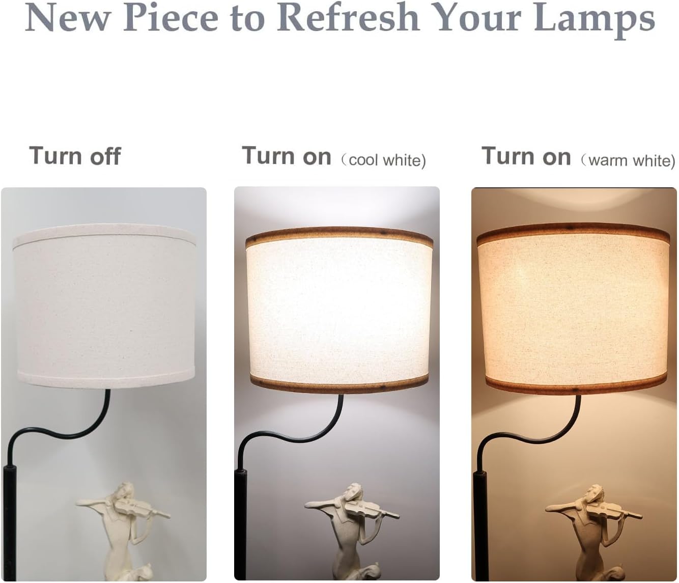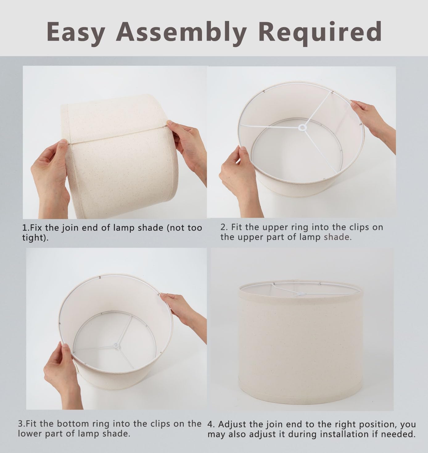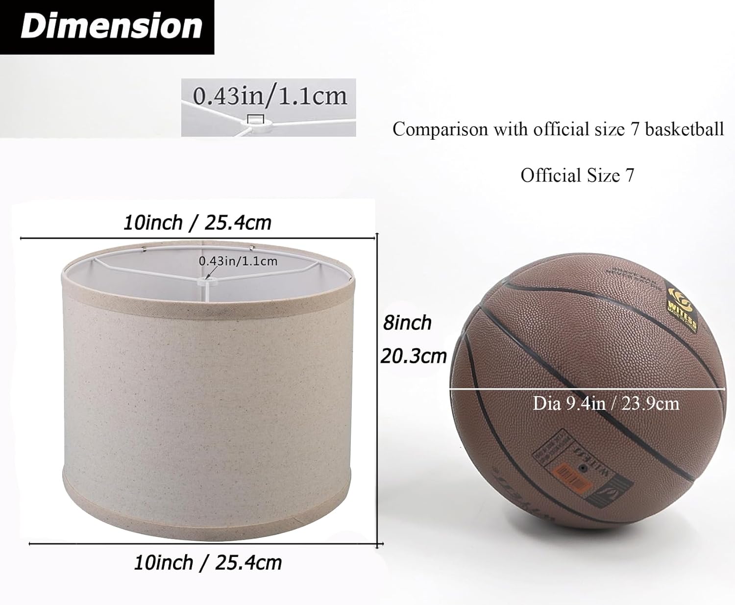 lampshades Set of 2, Drum Lamp Shades Set of 2, Lamp Shades for Table Lamps Easy Assembly Required Lamps Shades Natural Linen Fabric(Beige, 10″x10″x8″)