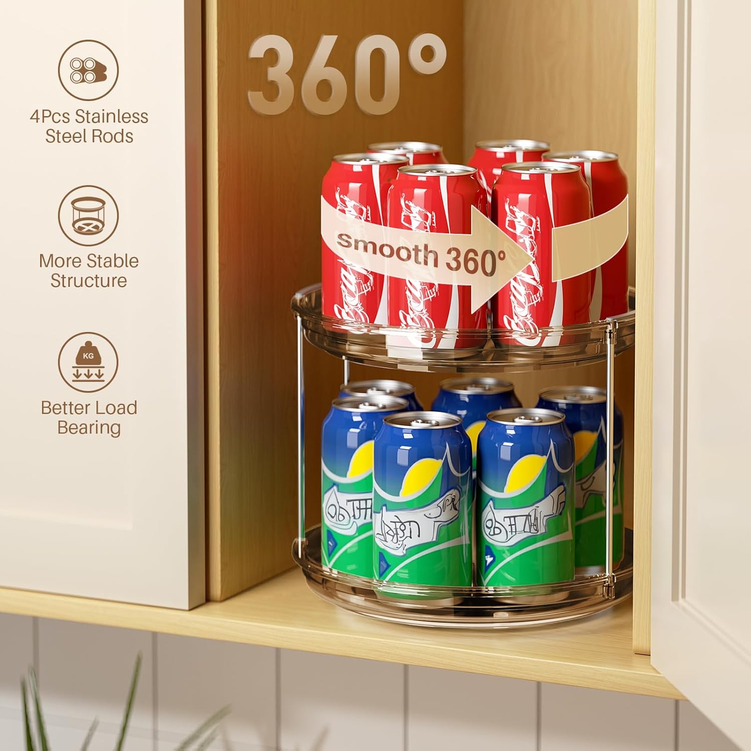 Enhanced Metal Rods: Unlike other flimsy plastic spinning seasoning organizers, our lazy susan turntable for cabinet uses metal rods to connect the two tiers for a sturdy construction that ensures stability even when loaded with heavy jars