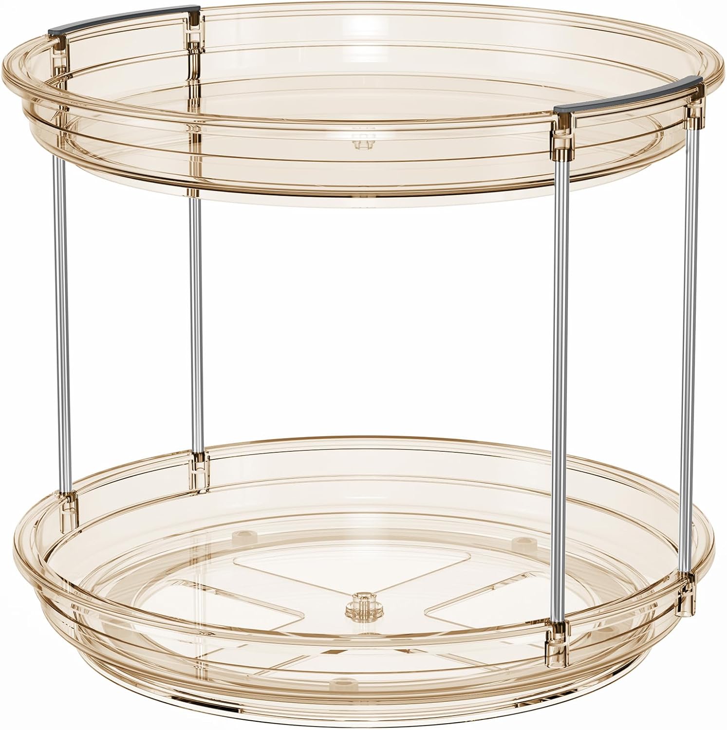 Versatile Stackable Design: Customize your space by stacking these units into a 3-tier amber Lazy Susan organizer when you buy 2 Sets — well-suited for kitchen cabinet organizer spices or seasoning, cans, beverages, medicine, bathroom counter organizer makeup, perfume, and more