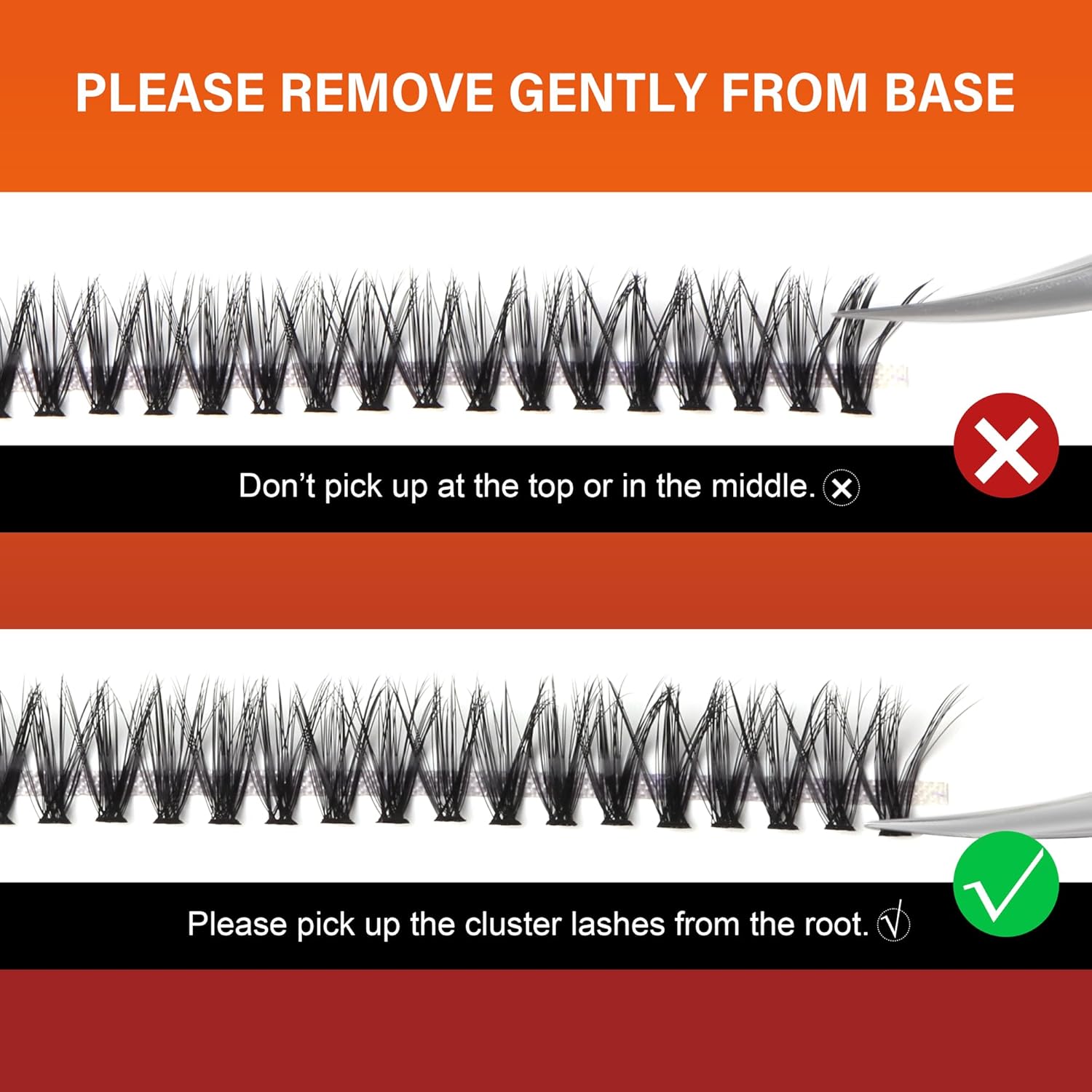 𝗣𝗿𝗲𝗺𝗶𝘂𝗺 𝗟𝗮𝘀𝗵 𝗘𝘅𝘁𝗲𝗻𝘀𝗶𝗼𝗻 Our eyelash clusters are made of top-grade 0.07mm synthetic fibers to create a natural and fluffy 3d faux mink lashes effect, no irritation or allergy. The 0.3mm superfine band provides a comfortable lash wearing experience. These individual eyelashes clusters do not fall apart, ensuring durability, and with proper use, they can last up to a week