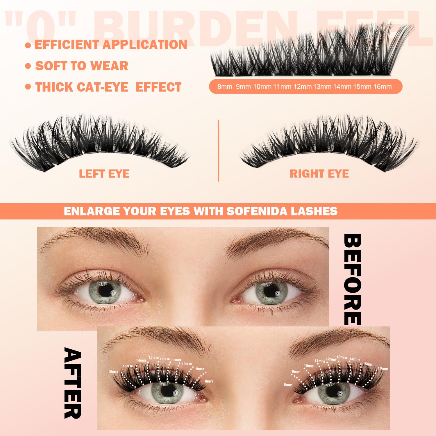 Long-Lasting & Reusable Lash Clusters: SOFENIDA eyelashes clusters are user-friendly and perfect for beginners and makeup lovers alike. When cared for properly, these durable lash clusters can be reused 3-5 times, providing excellent value and versatility.
