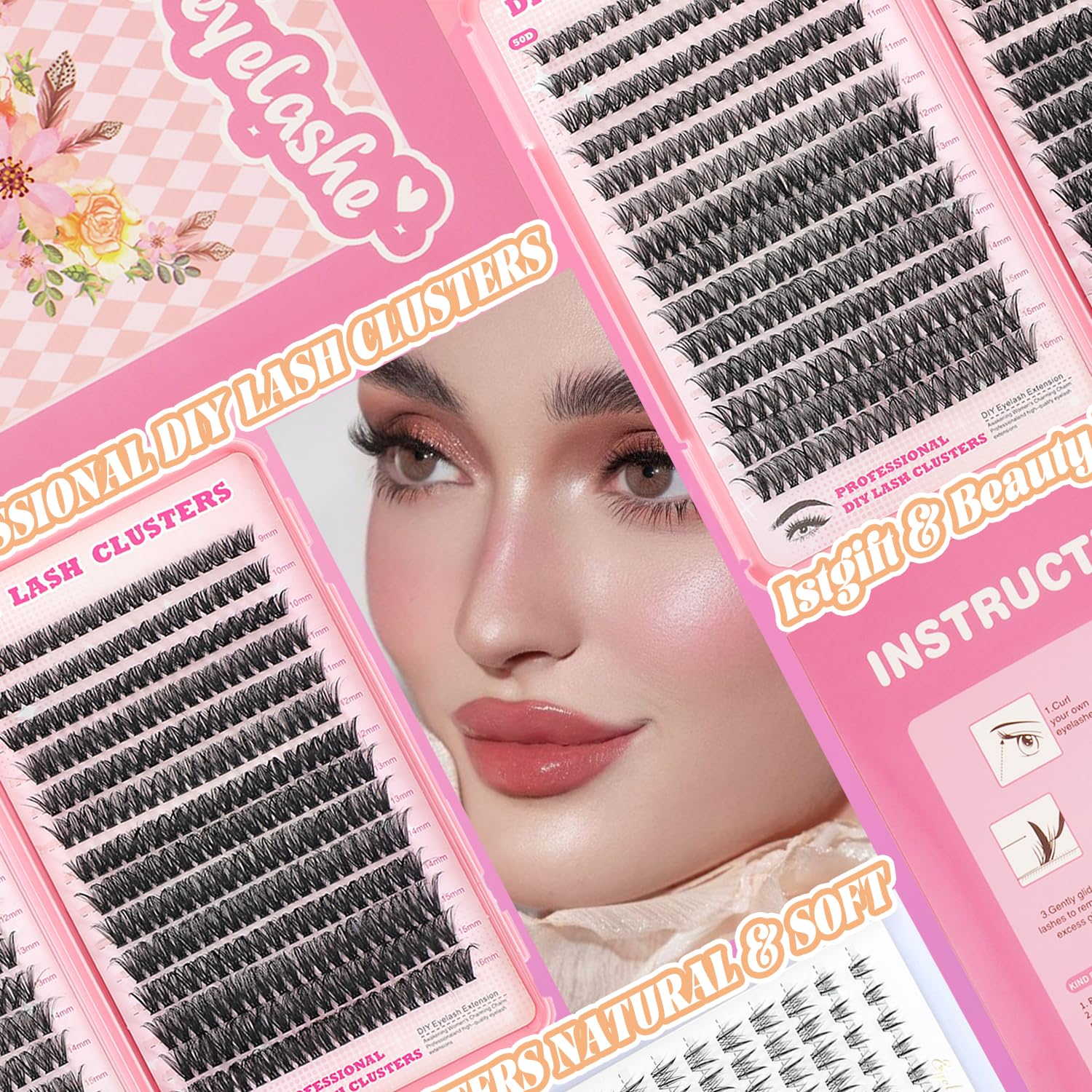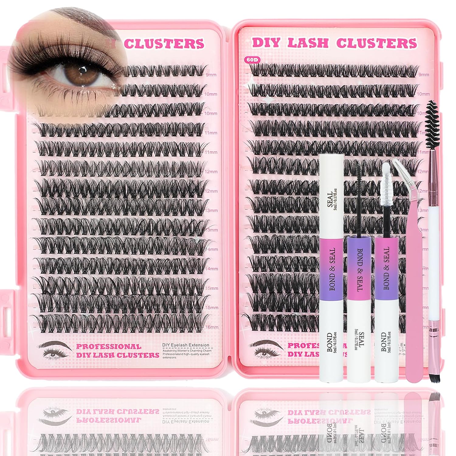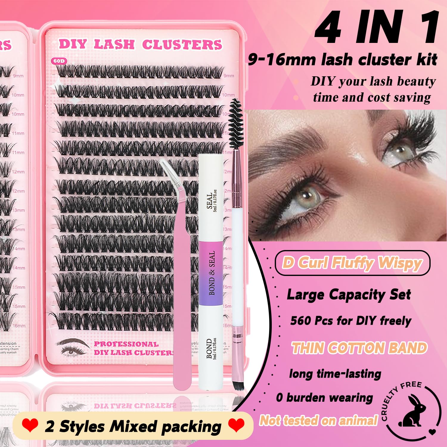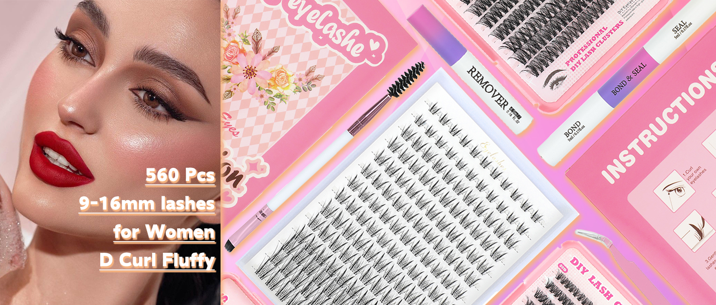Lash Clusters Kit, 560 Pcs Eyelashes Clusters Kit 9-16mm Individual Lash Extension Kit D Curl Fluffy Wispy False Eyelashes (50D+60D New, Lash Clusters Kit)