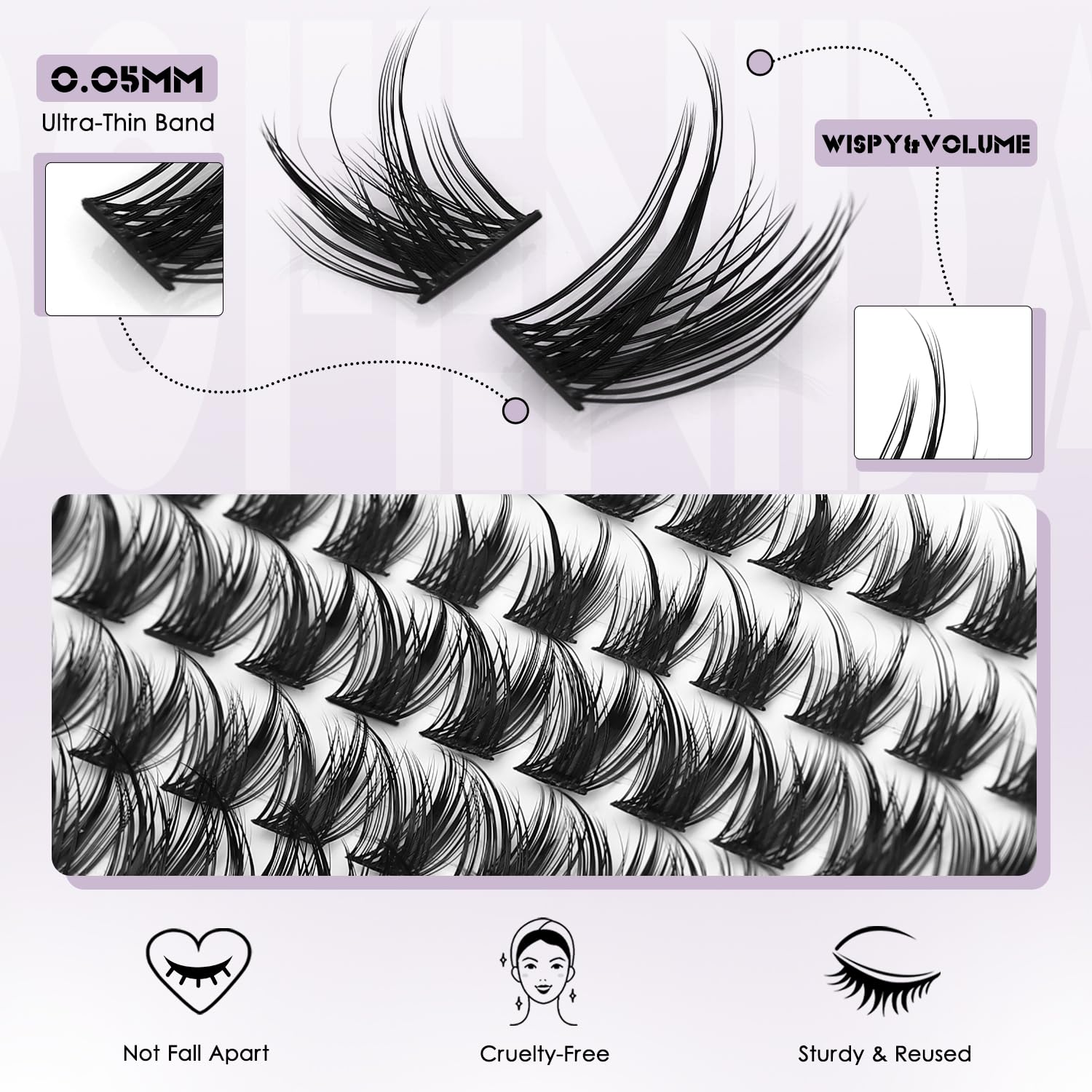 Effortlessly Chic Wispy Lashes: Achieve a gorgeous, natural yet glamorous look with our signature lash clusters wispy style. These individual lashes feature a natural lash clusters design with a fine, flexible band for seamless blending and lightweight, fluttery charm.